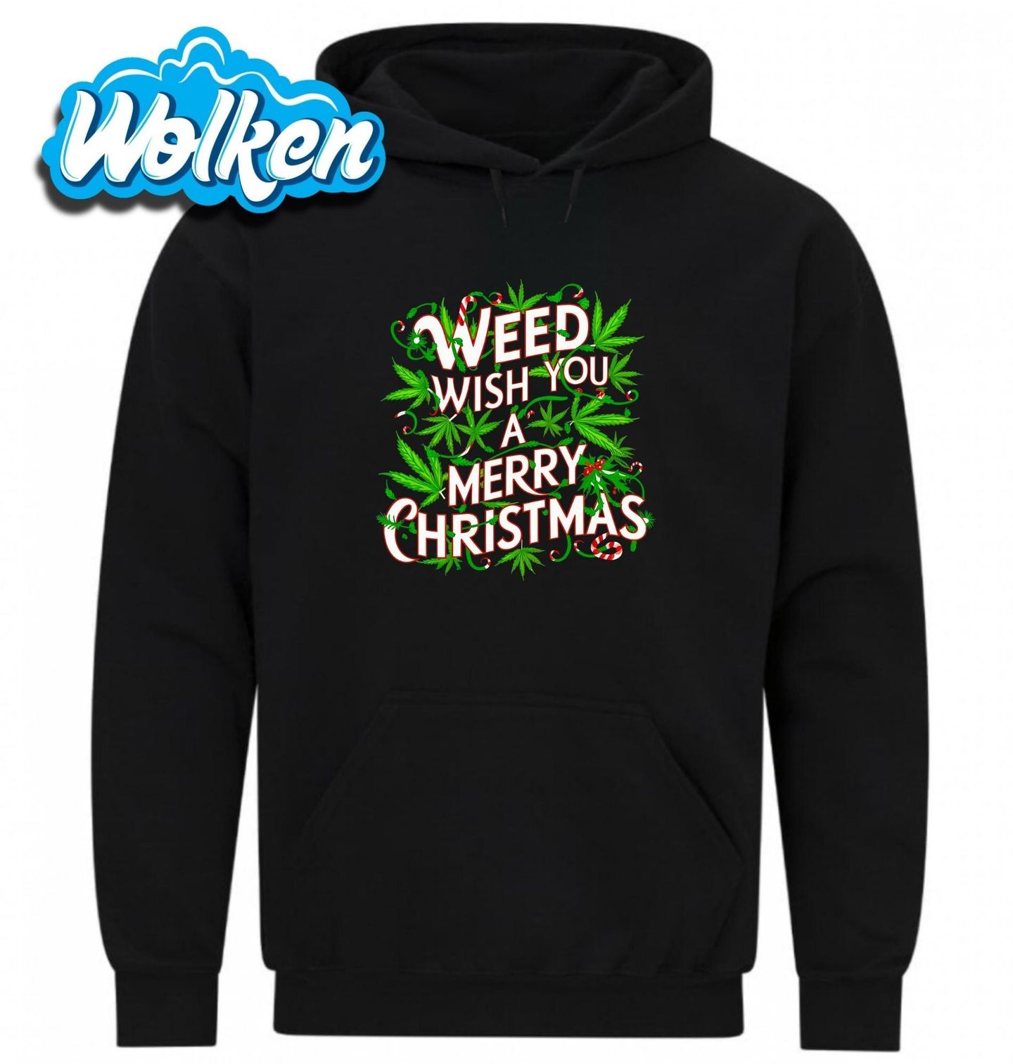 Pánská mikina Veselé Vánoce plné Trávy. Oslavte Vánoce jinak – s motivem, kde hraje hlavní roli tráva a marihuana. Design „Weed Wish You a Merry Christmas“ spojuje klasické sváteční prvky jako ozdoby a cukrové hůlky s listy marihuany, které dodávají motivu odlehčený a rebelsky laděný styl.