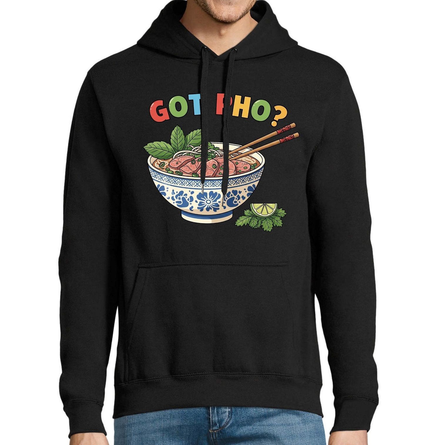 Pánská mikina Vietnamská polévka Pho Got Pho? Dáš si pho? Ikonická polévka pho, hůlky a čerstvé bylinky odkazují na autentickou chuť, kterou nabízí vietnam a jeho bohatá gastronomická tradice. Tento design spojuje humor, lásku k jídlu a moderní ilustraci. Motiv je ideální pro fanoušky vietnamské kuchyně, street food kultury i všechny, pro které je pho víc než jen polévka – je to zážitek z Asie.