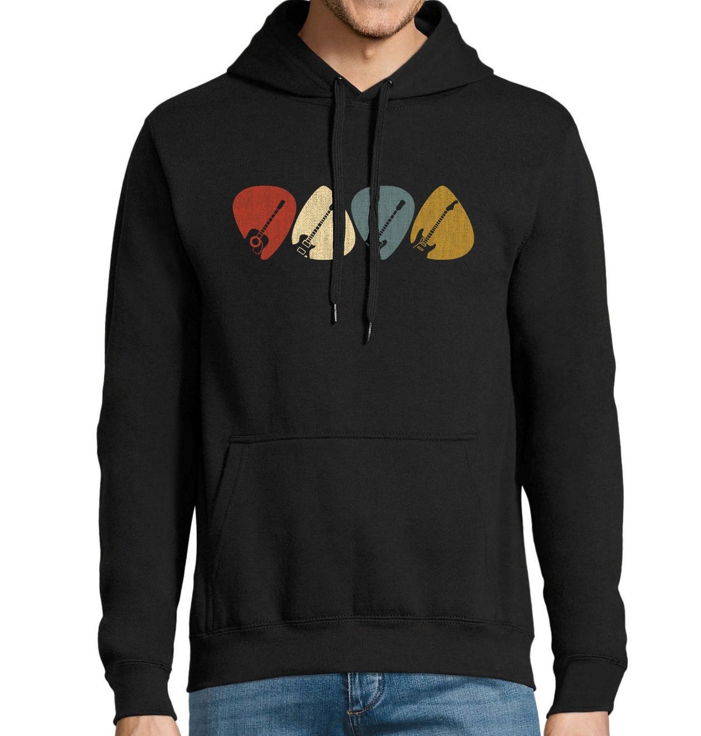 Pánská mikina Vintage Kytarová trsátka. Design tvoří čtyři barevná trsátka, z nichž každé ukrývá jiný typ kytary – od akustické po elektrickou. Tento motiv je ideální pro muzikanty, kytaristy i fanoušky rocku, blues nebo folku. Toto tričko oblíbíte na koncerty, zkoušky i každodenní nošení. Skvělá volba pro všechny, kdo mají hudbu, kytaru a trsátko v srdci.