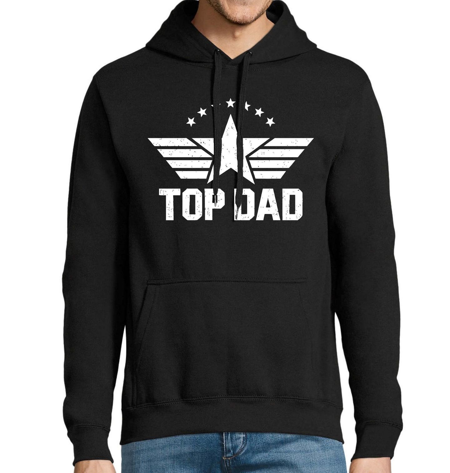 Pánská mikina Vintage Top Táta Top Dad. Výrazná hvězda, křídla a lehce opotřebovaný vintage vzhled vytvářejí nadčasový motiv, který připomíná ikonickou leteckou estetiku, jakou proslavil legendární film Top Gun. Tento motiv skvěle vystihuje sílu, odvahu i humor, který každý správný táta ocení.