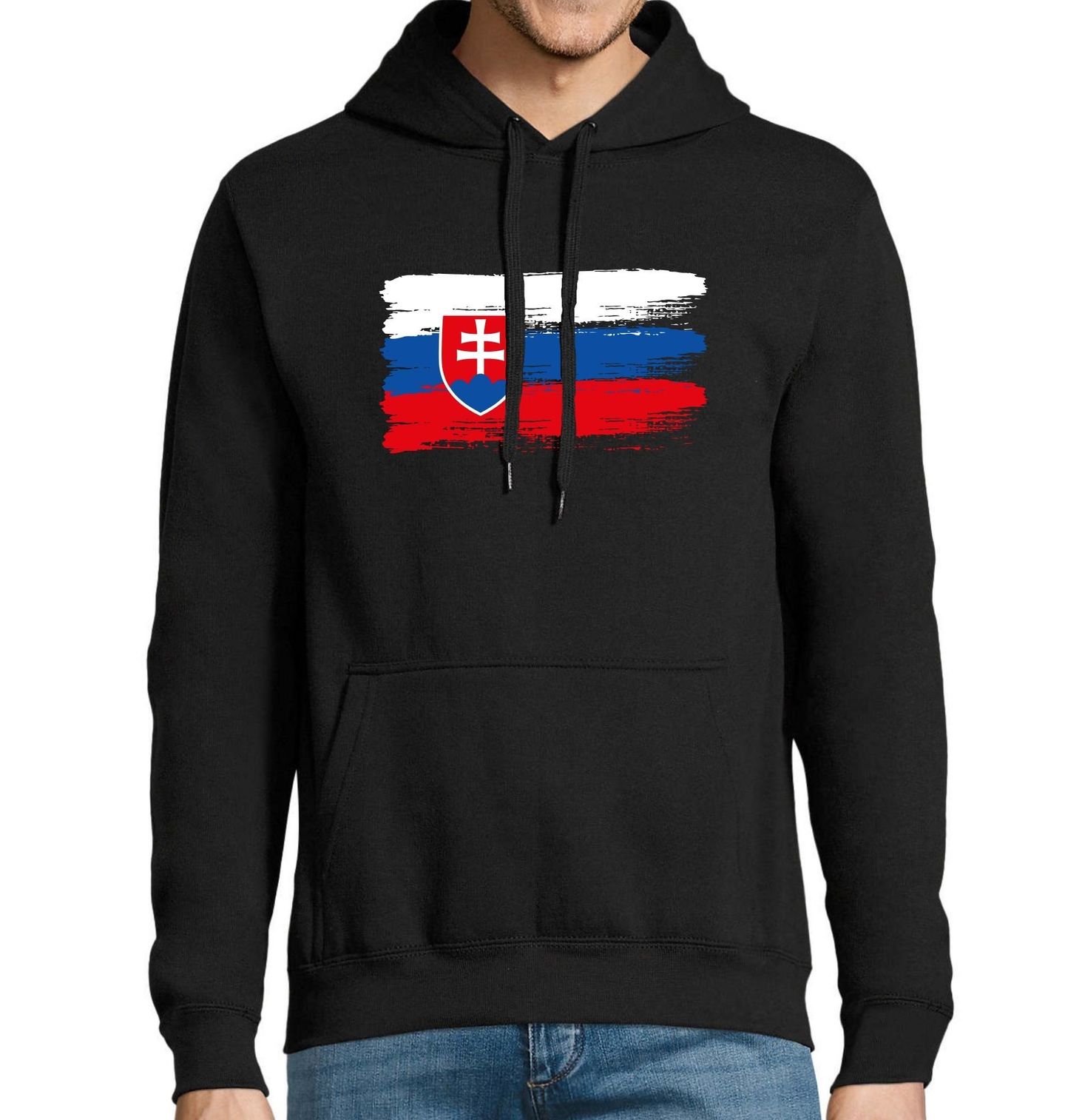 Pánská mikina Vlajka Slovenska. Motiv s ikonickou vlajkou Slovensko v moderním štětcovém stylu je dokonalou volbou pro každého, kdo chce vyjádřit svou národní hrdost stylově a originálně. Tato slovenská vlajka se symbolem státního znaku je ideální pro fanoušky, vlastence i pro milovníky Slovenska.