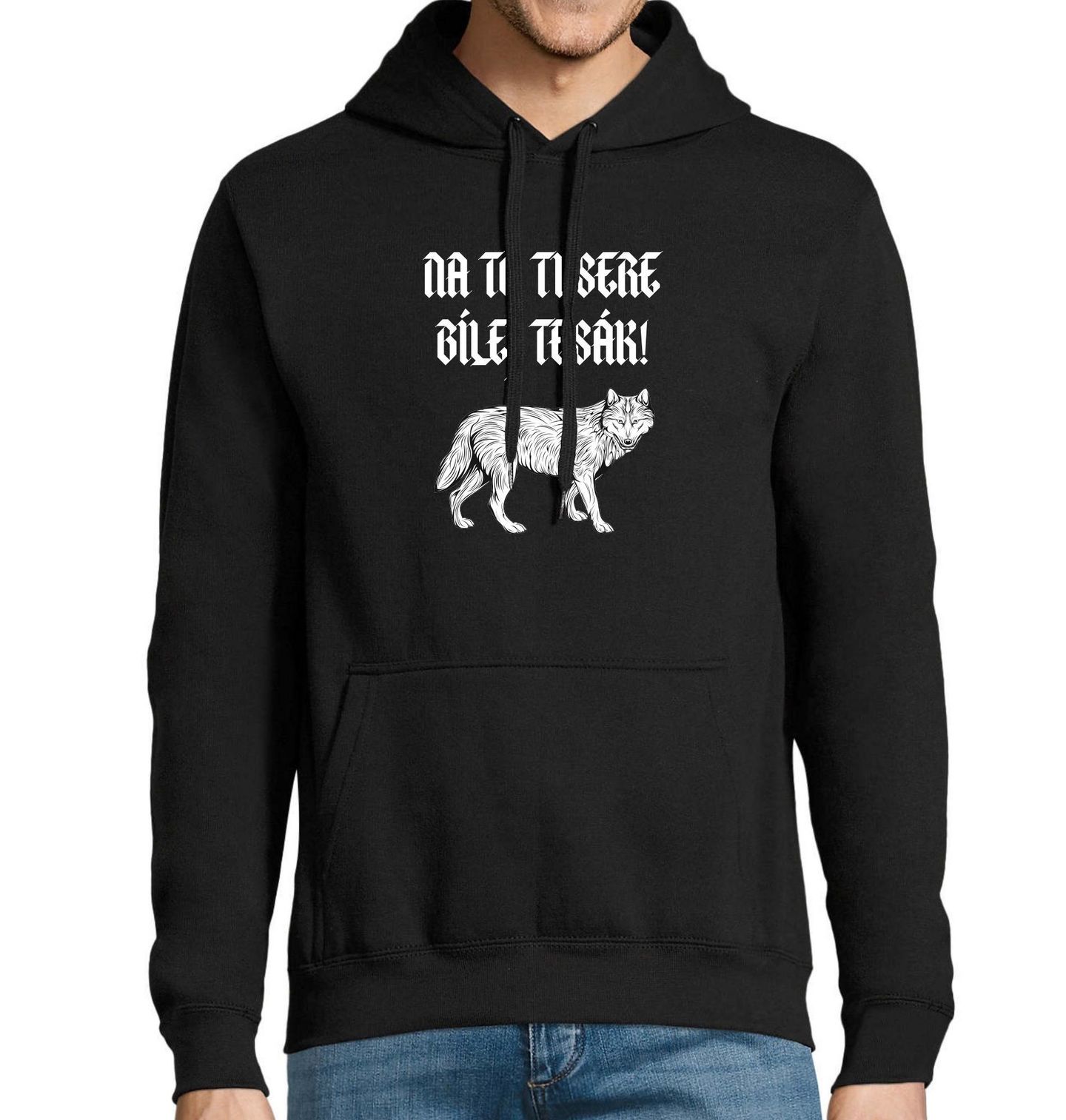 Pánská mikina Vlčí hláška Na to ti sere bílej tesák!