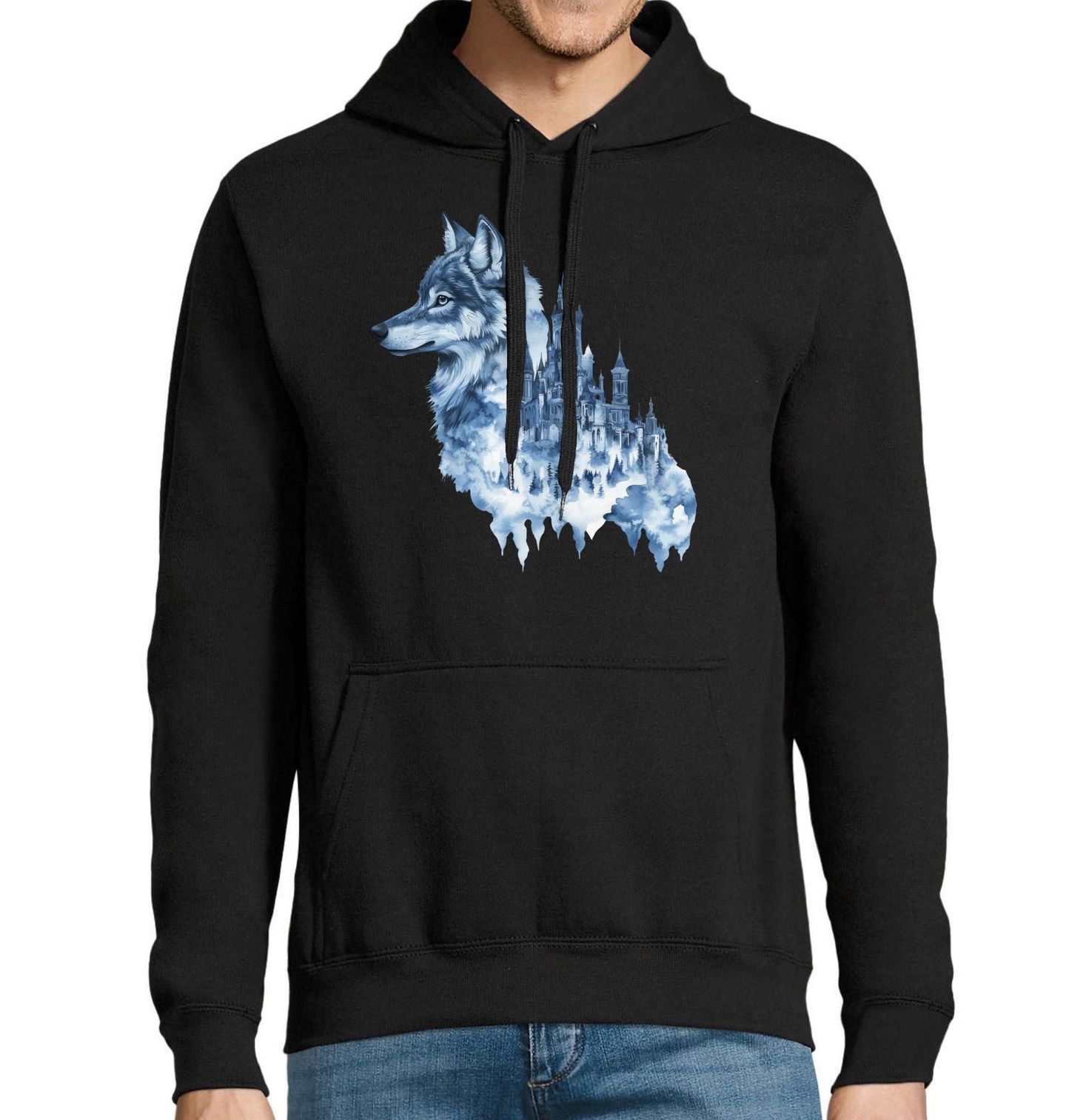 Pánská mikina Vlčí Strážce Zámku. V srdci divočiny se ukrývá zamek, který vypadá, jako by byl vytesán přímo do siluety vlka. Výrazné linie a kontrastní barvy vytvářejí harmonii mezi divokostí a historií. Motiv vlka, zámku je ideální volbou pro všechny, kdo hledají originální kousek s mystickým příběhem.