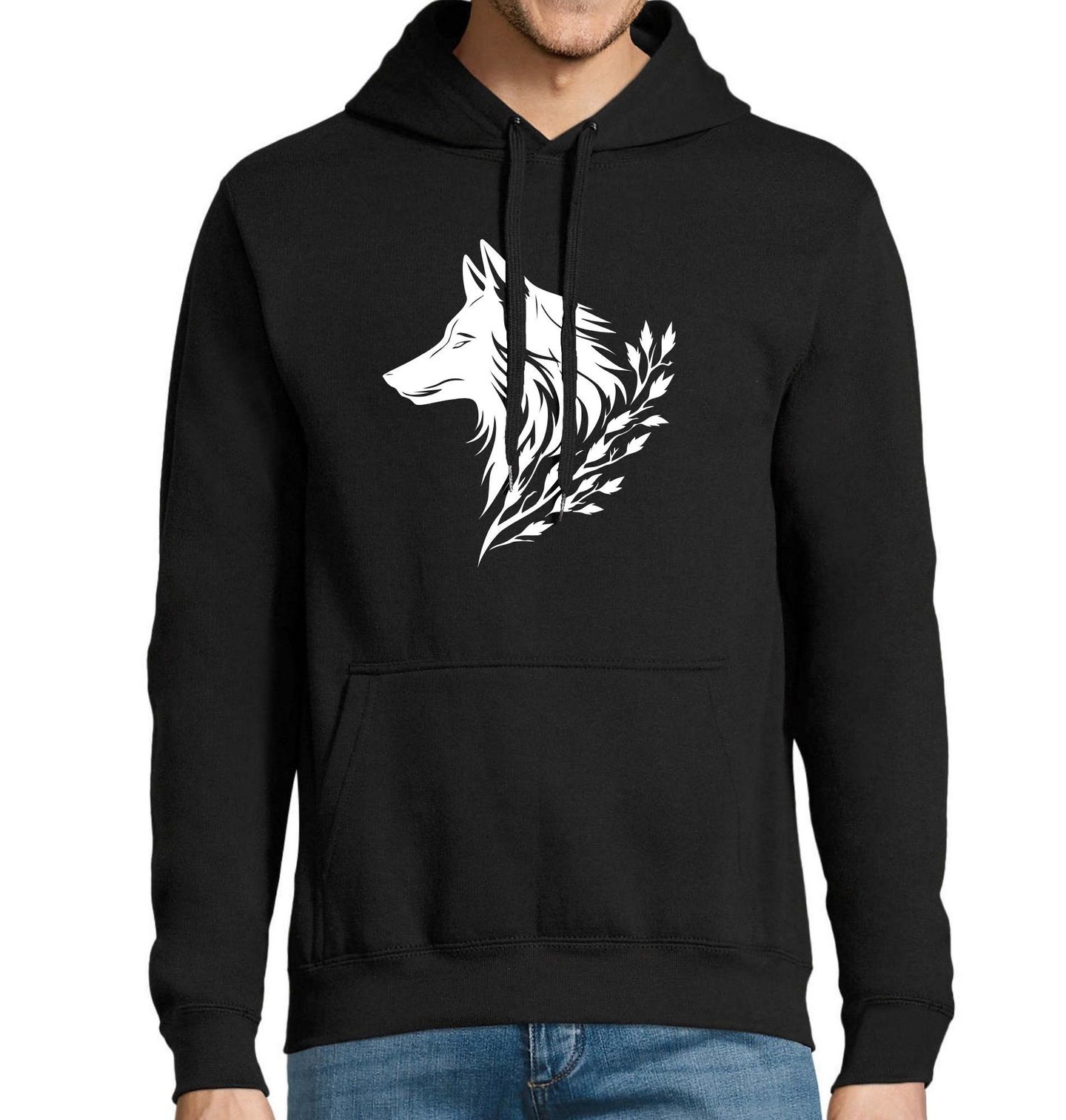 Pánská mikina Vlk mezi Listy. Minimalistický motiv vlka propojený s větvemi symbolizuje svobodu, intuici a spojení s přírodou. Je to design, který mluví beze slov – o loajalitě, tichu, hrdosti a vnitřní síle. Ideální volba pro každého, kdo v sobě nosí kousek divočiny – klidného, ale nikdy zkroceného vlka.