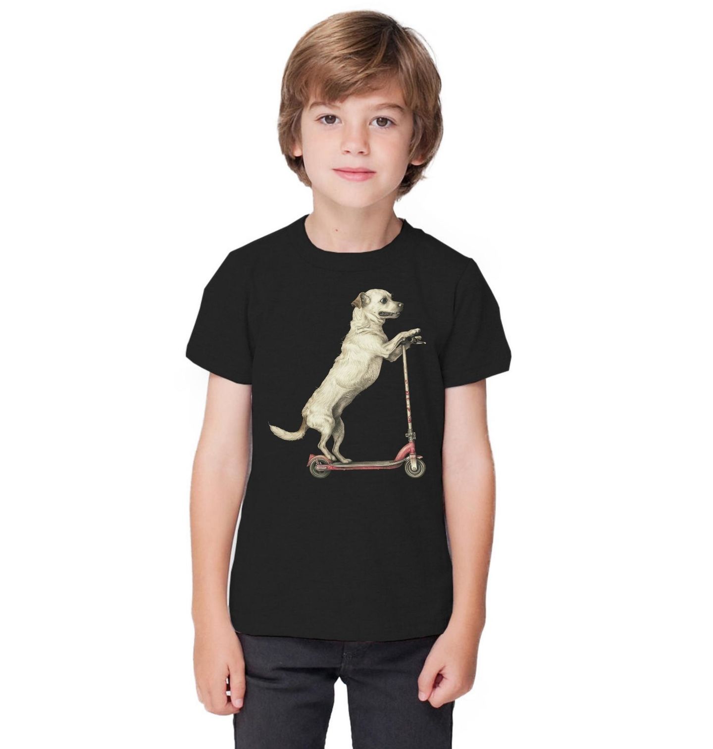 Dětské tričko Voříšek na Koloběžce. Podle vzhledu jde nejpravděpodobněji o křížence malého plemene Jack Russell teriér. Tenhle pes se s obyčejnou procházkou nespokojí. Naskočí na koloběžku, chytí řídítka a jede naplno vstříc dalšímu dobrodružství. Motiv zachycuje hravého křížence – typického voříška s energií a odvahou, kterou dobře zná každý pejskař.