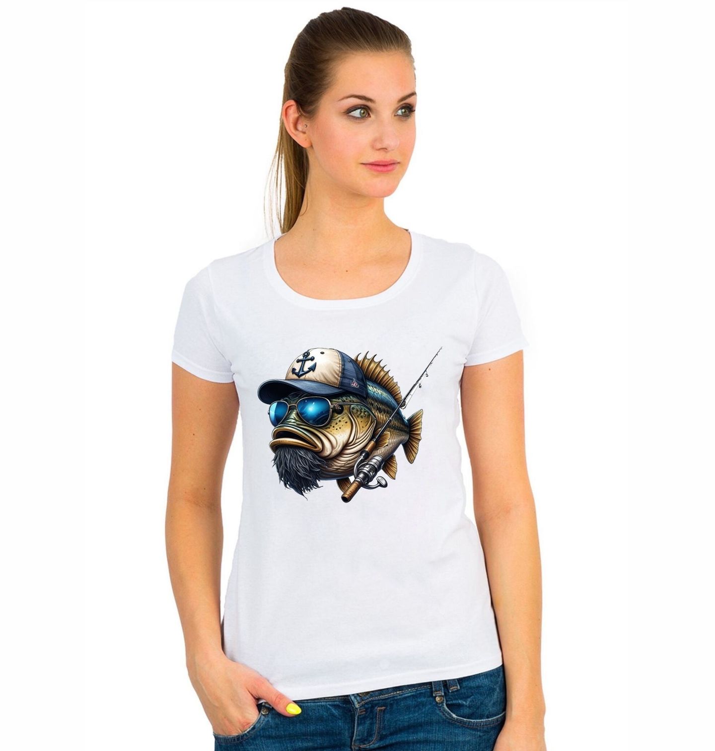 Dámské tričko Vousatý Okoun s Prutem. Co se stane, když se vášnivý rybář převtělí do své oblíbené ryby? Vznikne tenhle originální motiv okouna s kšiltovkou, vousy a rybářským prutem! Tahle ryba má styl i zkušenosti, a je ideální pro každého, kdo bere rybaření vážně i s humorem.