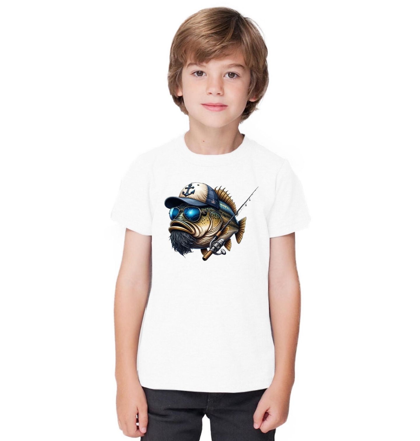 Dětské tričko Vousatý Okoun s Prutem. Co se stane, když se vášnivý rybář převtělí do své oblíbené ryby? Vznikne tenhle originální motiv okouna s kšiltovkou, vousy a rybářským prutem! Tahle ryba má styl i zkušenosti, a je ideální pro každého, kdo bere rybaření vážně i s humorem.