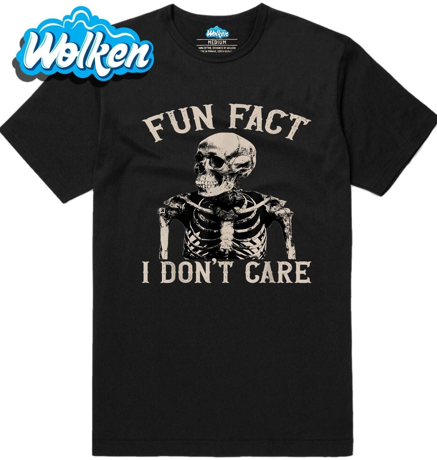 Pánské tričko Vtipný fakt: Je mi to jedno. „Fun Fact – I Don’t Care“ česky „Vtipný fakt – je mi to jedno“ přináší pořádnou dávku sarkasmu a černého humoru. Na designu je kostlivec, který s úsměvem dává jasně najevo, že ho už vůbec nic nezajímá. Ideální pro ty, kteří berou život s nadhledem a nebojí se ukázat svůj styl.