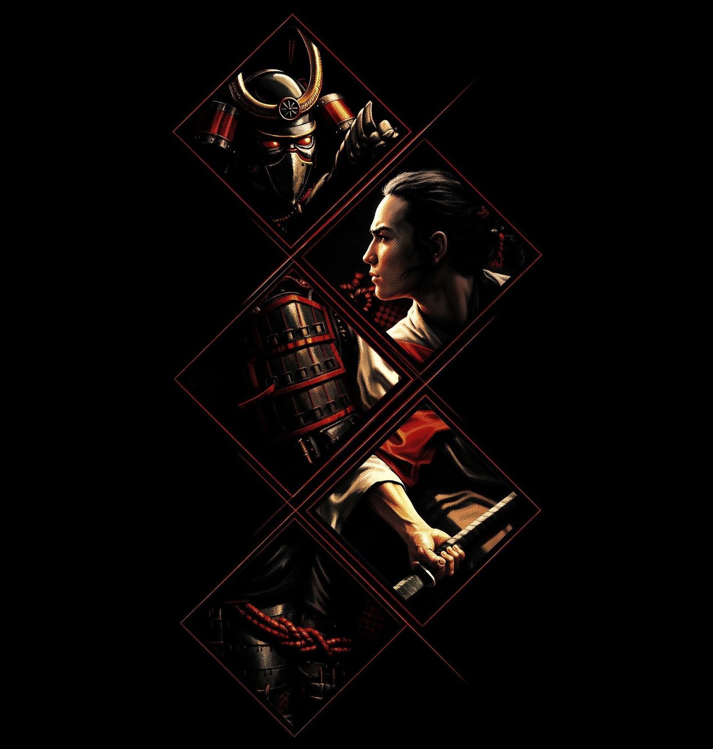 Pánská mikina Výcvik Samurajů. Tento originální motiv zachycuje sílu a eleganci japonského bojovníka v moderním, stylizovaném provedení. Hlavní postavou je samuraj, zobrazený v dynamické kompozici, která propojuje detaily zbroje, masky i soustředěného pohledu před bojem. Design je rozdělen do geometrických segmentů, které vytvářejí jedinečný vizuální efekt a zároveň zdůrazňují různé aspekty života samuraj – disciplínu, odvahu i připravenost čelit jakékoli výzvě.