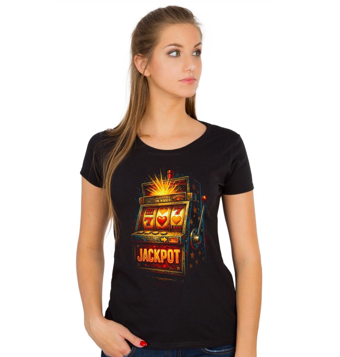 Dámské tričko Výherní Automat Jackpot One Winner. Napětí, štěstí a okamžik, který rozhoduje – tento výrazný motiv zobrazuje herní automat jako symbol risku, adrenalinu a touhy po výhře. Roztočené válce, zářící světla a nápis jackpot zachycují ten jediný moment, kdy se může změnit celý příběh. Herní automat zde představuje svět, kde rozhoduje náhoda, odvaha a chuť jít do hry naplno. Gambling není jen o štěstí, ale o emocích, napětí a odvaze vsadit všechno na jednu kartu.