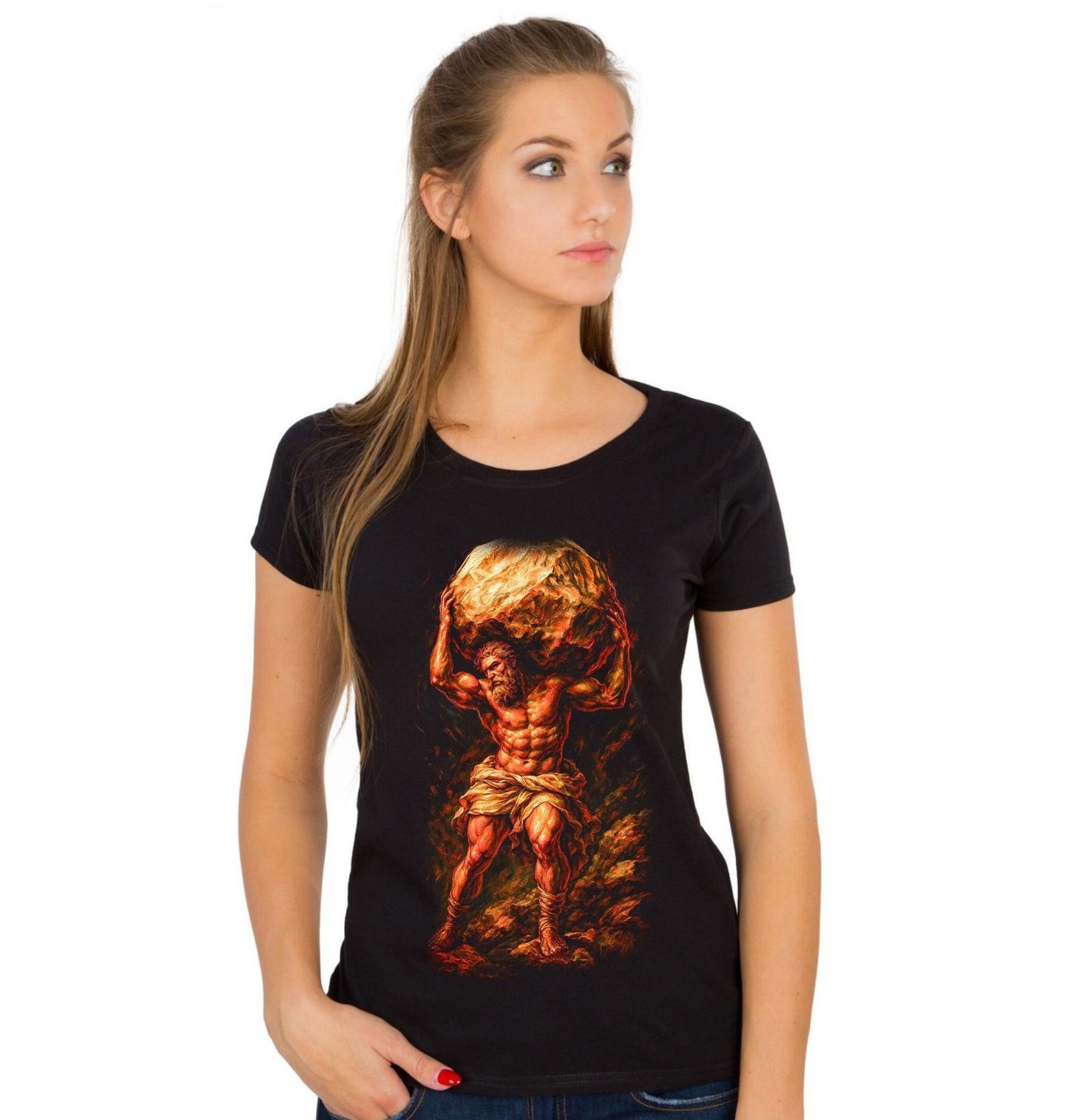 Dámské tričko Vytrvalý Sisyfos. Sisyfos (latinsky Sisyphus) je postava z řecké mytologie, zakladatel a král Korinthu, známý svou chytrostí a lstivostí. Za své prohřešky vůči bohům byl odsouzen k věčnému trestu v podsvětí – valit obrovský balvan na vrchol hory, odkud se kámen vždy skutálel zpět dolu. Tento motiv není jen příběhem z dávných časů – je metaforou každodenního boje, který všichni známe.