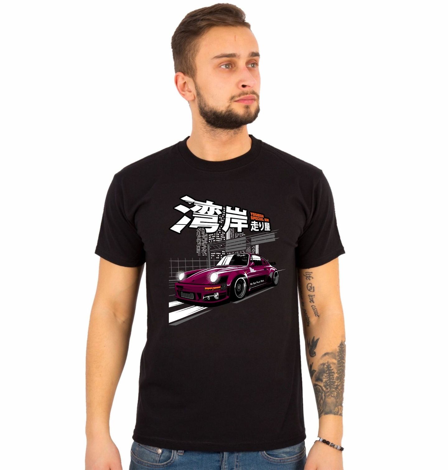 Pánské tričko Yoshida Special 930. Stylový motiv inspirovaný legendárními nočními jízdami po japonských dálnicích přináší unikátní retro atmosféru. Design zachycuje klasické sportovní auto ve stylu Porsche 930 upravené v duchu japonské JDM tuning kultury, kde se evropské ikony setkávají s estetikou, kterou proslavilo Japonsko.