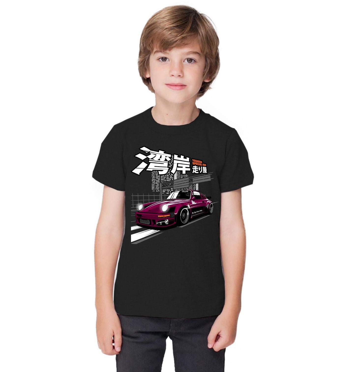Dětské tričko Yoshida Special 930. Stylový motiv inspirovaný legendárními nočními jízdami po japonských dálnicích přináší unikátní retro atmosféru. Design zachycuje klasické sportovní auto ve stylu Porsche 930 upravené v duchu japonské JDM tuning kultury, kde se evropské ikony setkávají s estetikou, kterou proslavilo Japonsko.