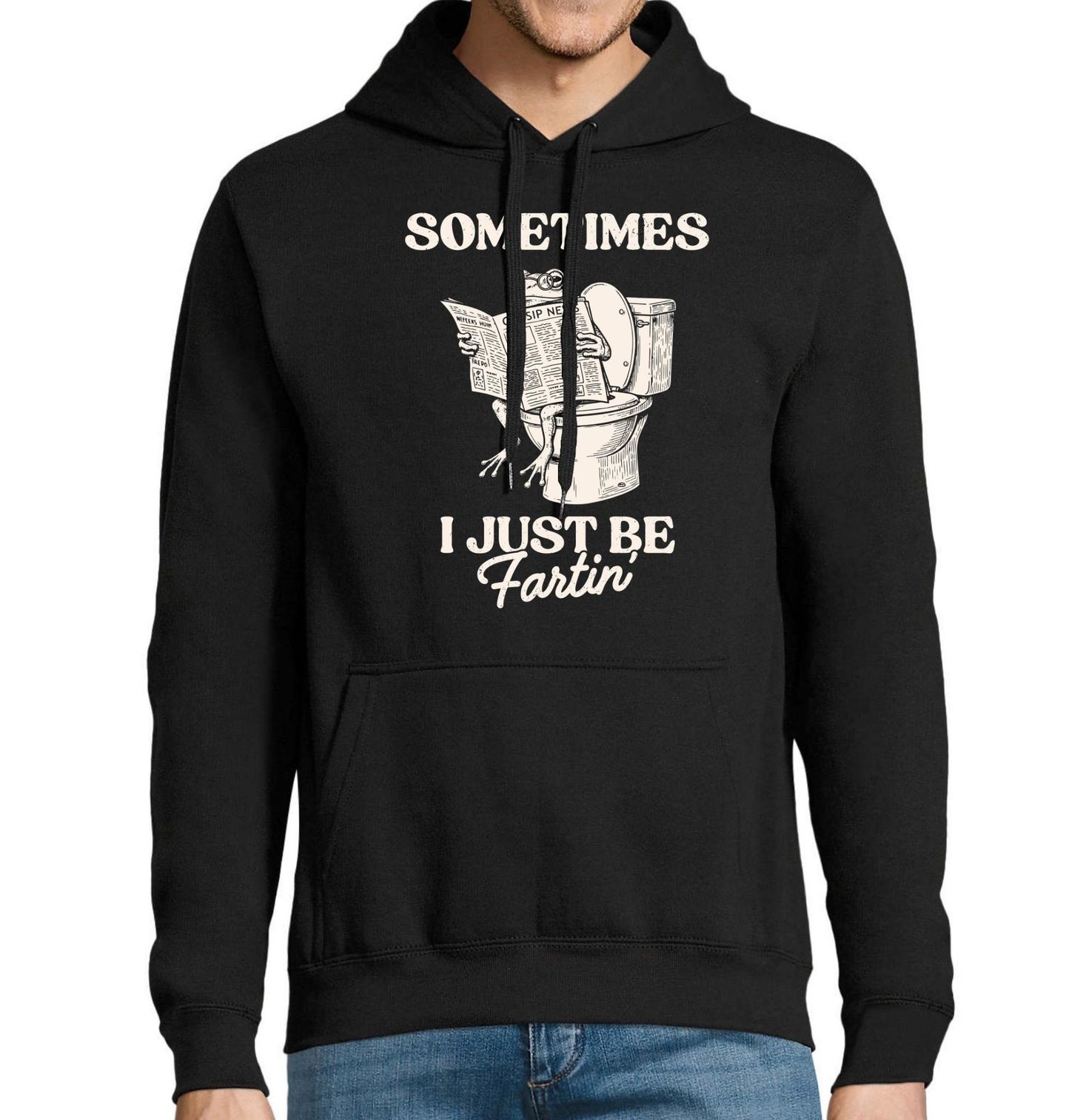 Pánská mikina Žába na WC Někdy si prostě jen tak prdím. Tenhle motiv je přesně ten typ humoru, který buď miluješ… nebo se za něj směješ potichu. Hlavní postavou je stylová žába, která si v klidu čte noviny na záchodě a doplňuje ji legendární text: „Sometimes I just be fartin’“. Jednoduchý retro styl ilustrace a absurdní situace vytváří skvělé meme, které pobaví každého s trochou nadhledu a smyslem pro trapně-dobrý humor.
