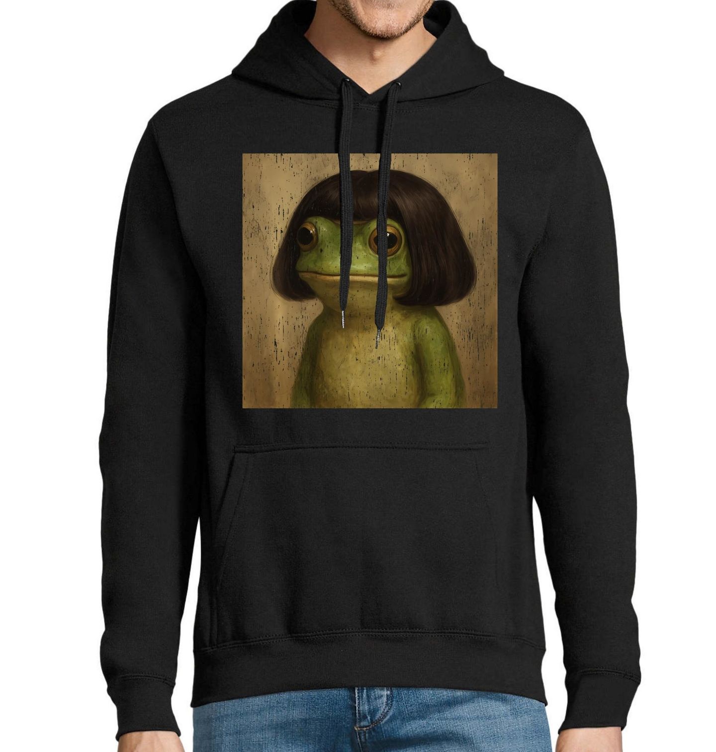 Pánská mikina Žába s Vlasy Frog Bob Haircut. Vtipný a nezapomenutelný motiv, který okamžitě pobaví – žába s perfektním bob účesem jako by právě vyšla z nejstylovějšího kadeřnictví. Tento design kombinuje humor, originalitu a lehce bizarní estetiku, která zaručeně přitáhne pozornost. Detailně zpracovaná žába působí klidně a sebevědomě, jako by věděla, že její účes je absolutní top.