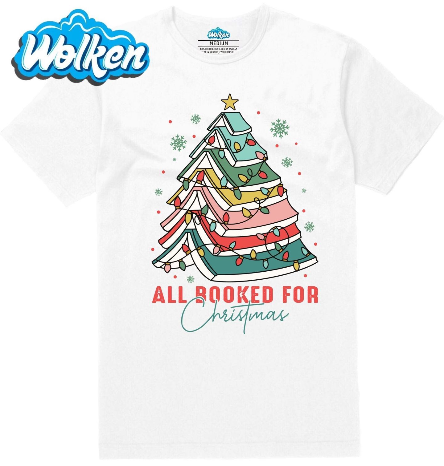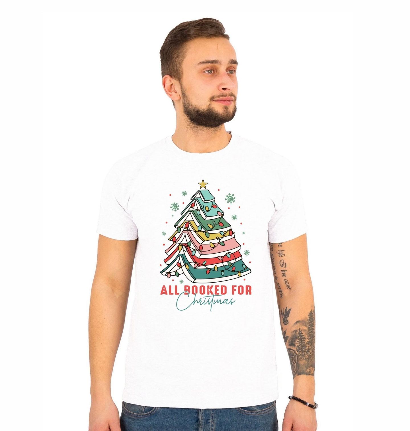 Pánské tričko Zabookované Vánoce Čtenáře. „All booked for Christmas“ – volně přeloženo jako: „Úplně zabookováno na Vánoce“ (přeneseně: „Mám čtení až do Vánoc“ – slovní hříčka s „booked“ = „zarezervováno“ / „s knihami“). Pro ty, kdo milují Vánoce a čtení.