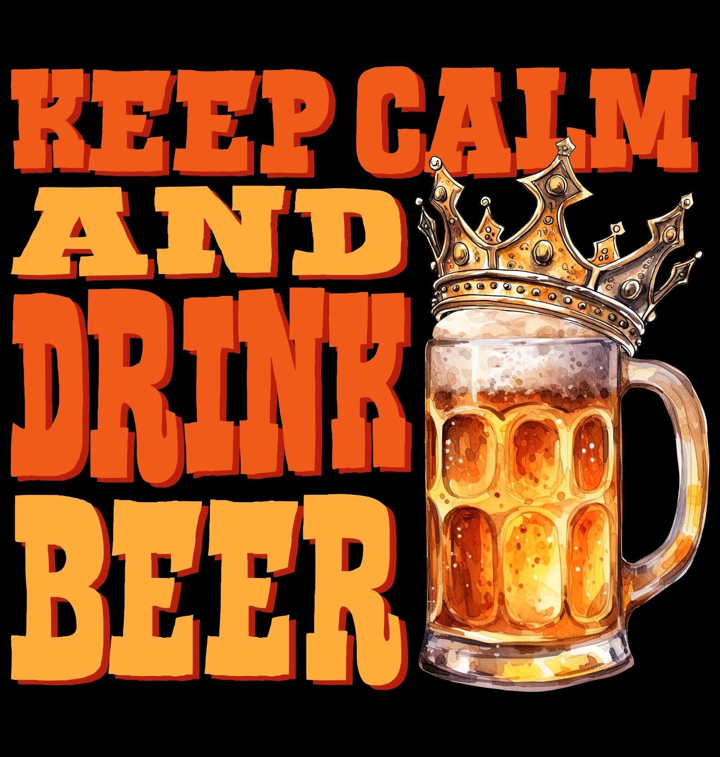 Pánská mikina Zachovej klid a pij pivo Keep Calm and Drink Beer. Stylový a vtipný motiv pro všechny, kteří věří, že pivo je nejlepší způsob, jak zůstat v klidu. Design zobrazuje půllitr s korunou a nápis „Keep Calm and Drink Beer“, což v překladu znamená „Zachovej klid a pij pivo“. Motiv vychází z populární fráze „Keep Calm“, kterou doplňuje humorný pivní twist.