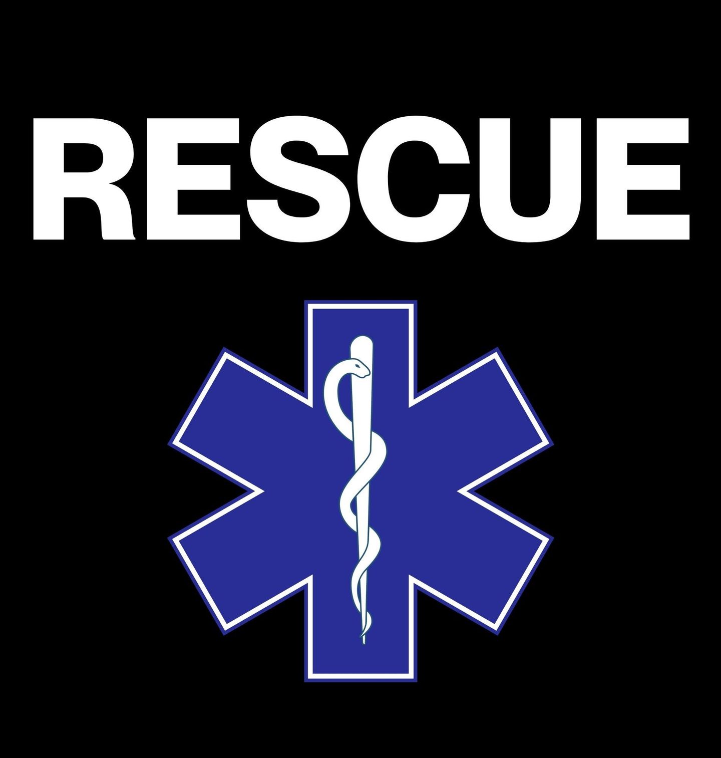 Pánské tričko Záchranář RESCUE. Aeskulapova hůl je znak lékařů a farmaceutů. Výrazný design s nápisem „RESCUE“ nad modrou hvězdou života (Star of Life), uprostřed které je had omotaný kolem hole – symbol medicíny. Motiv reprezentuje záchranáře, zdravotníky a první pomoc. Text na obrázku: „RESCUE“ (Záchrana)