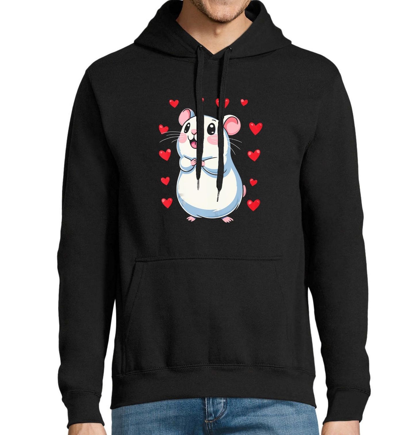 Pánská mikina Zamilovaný Křeček. Roztomilý křeček, kterému láska doslova svítí z očí! Tričko s tímto motivem je ideální pro každého milovníka hlodavců, romantiky nebo kawaii stylu. Pokud hledáte outfit, který šíří dobrou náladu a zároveň ukazuje vaši slabost pro roztomilé tvory, tenhle hlodavec plný lásky je jasná volba. Ideální dárek pro milovníky hlodavců, nebo každého, komu bije srdce pro mazlíčky.