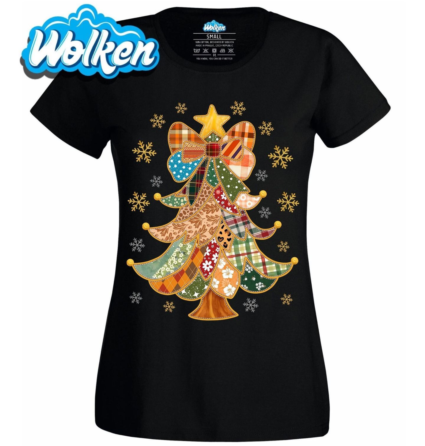 Dámské tričko Záplatovaný Vánoční Stromek. Vánoce v patchworkovém stylu! Tento originální motiv vánočního stromku poskládaného z různorodých záplat, vzorovaných látek a puntíků přináší do Vánoc hravost, nostalgii i teplou atmosféru domova.