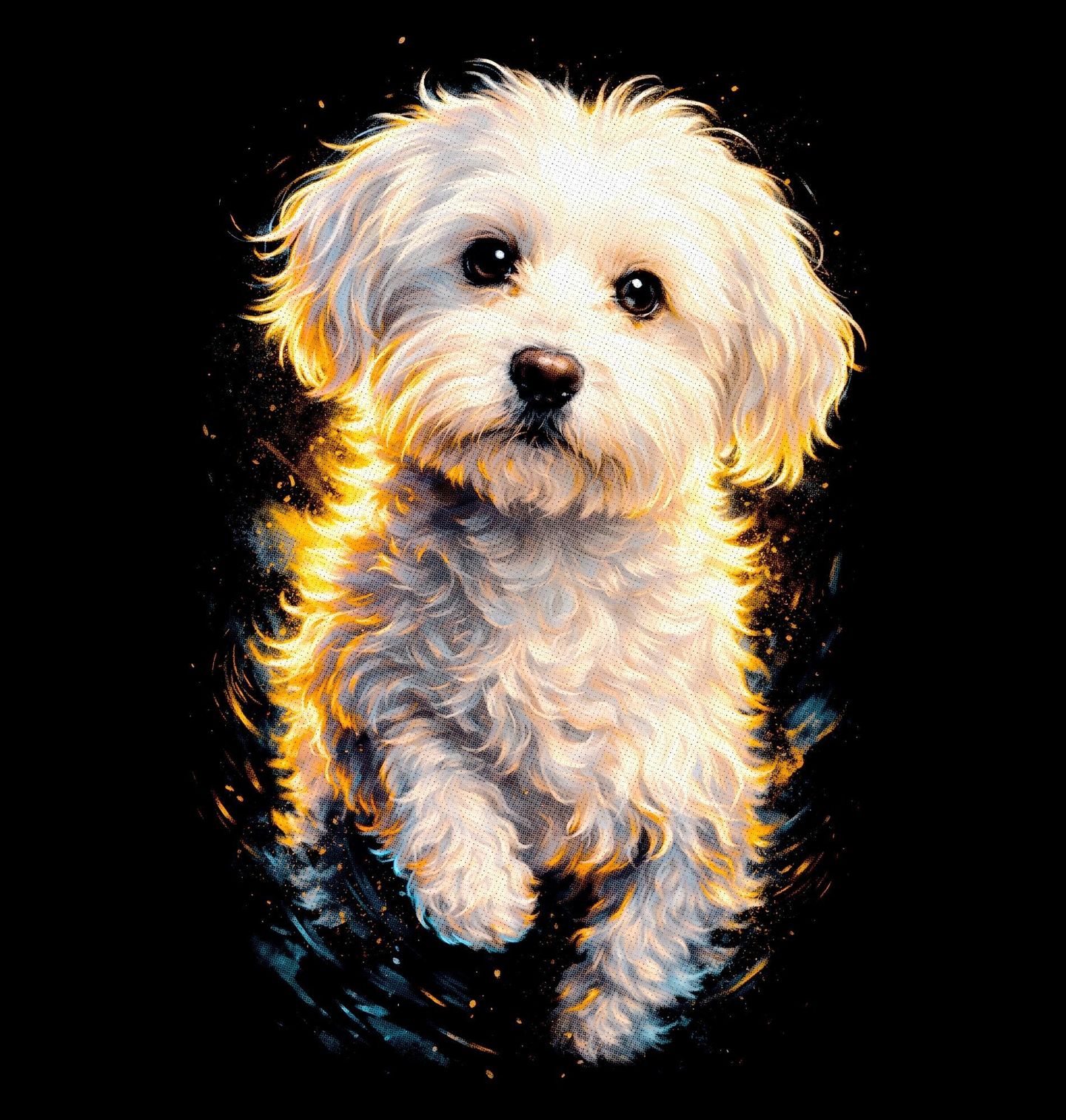 Dámské tričko Zářivý Bišonek. Tento nádherný motiv zachycuje roztomilého psa s jemnou, nadýchanou srstí a výraznýma očima v moderním, lehce uměleckém stylu. Jedná se o plemeno bišonek (Bichon Frisé), které je známé svou hravou povahou, přátelskostí a ikonickým „plyšovým“ vzhledem. Každý pejskař ocení detailní zpracování, které dodává motivu živost a eleganci.