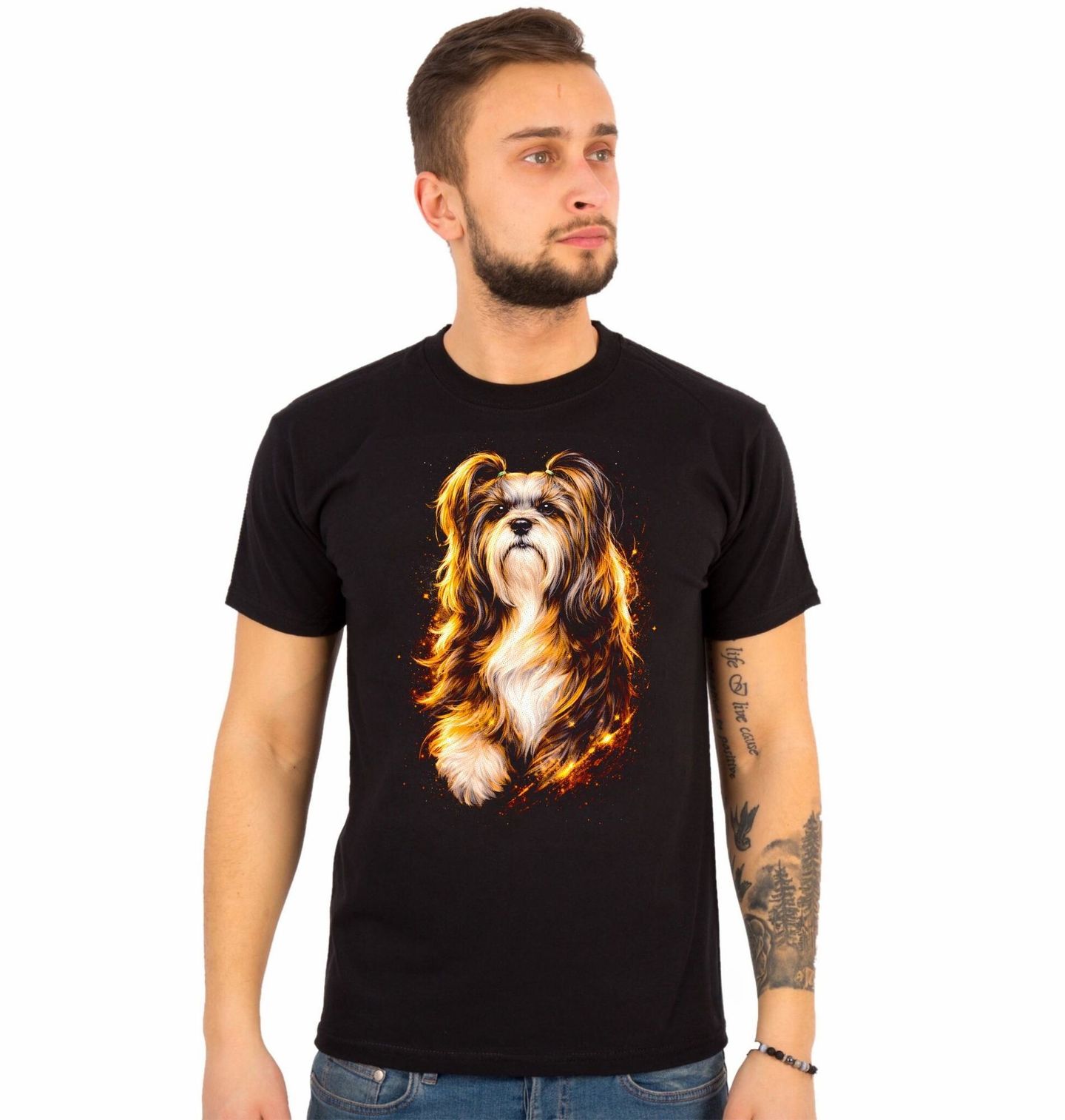 Pánské tričko Zářivý Shih-tzu. Tento výrazný motiv zachycuje dlouhosrstého psa s typickým upraveným vzhledem a bohatou srstí. Jedná se o plemeno shih-tzu, které je známé svou elegancí, přátelskou povahou a aristokratickým vzhledem. Umělecké zpracování se zářivými efekty dodává motivu jedinečný styl a moderní nádech. Každý pejskař ocení detailní zpracování a výrazný charakter, který tento pes vyzařuje.