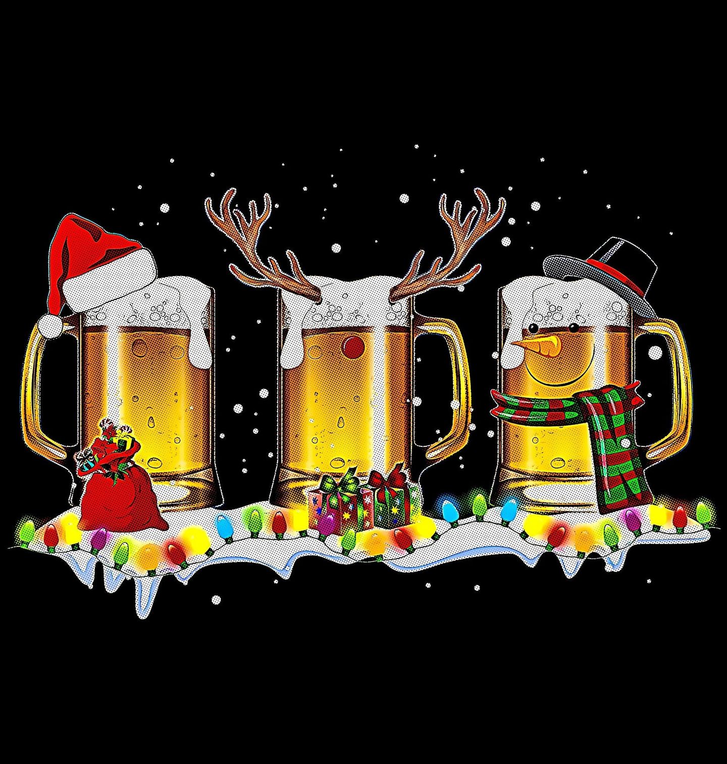 Pánské tričko Zasněžené Pivo. Tohle je ultimátní motiv pro každého, kdo miluje pivo, pořádnou párty a Vánoce! Tři půllitry piva v roli vánočních postaviček – jeden jako Santa, druhý jako sob a třetí jako sněhulák – zaručeně rozveselí každého milovníka alkoholu a Vánoce s nimi budou mít říz.