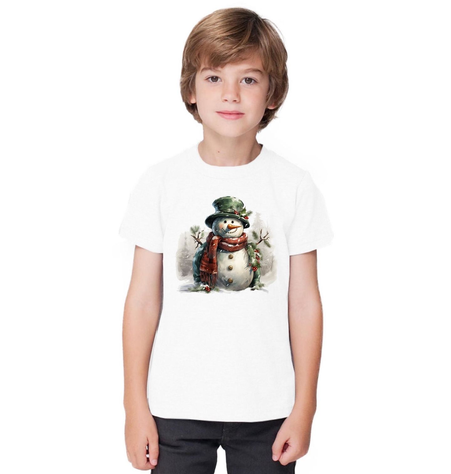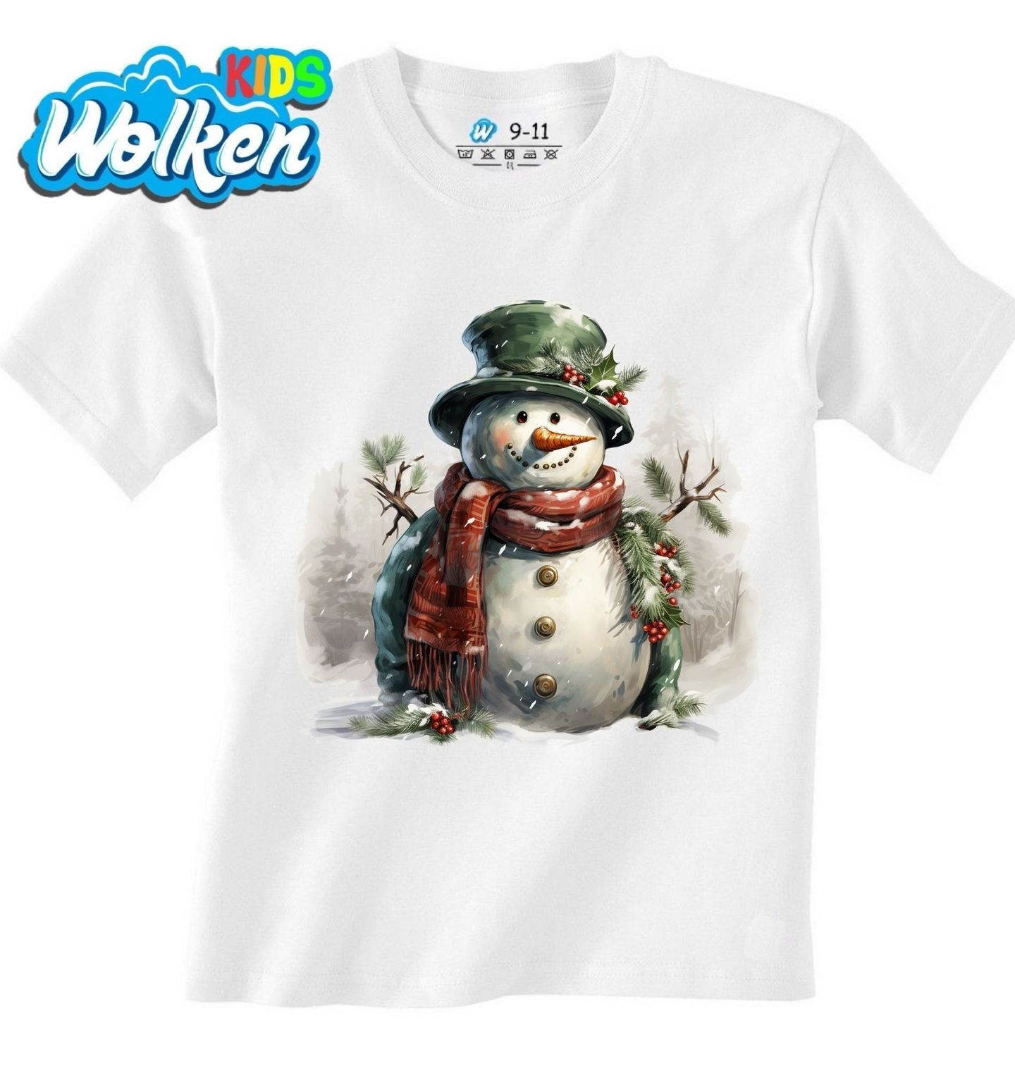 Dětské tričko Zasněžený Vánoční Sněhulák. Elegantní zelený klobouk, červená šála a dekorace z cesmíny dělají z tohoto sněhuláka stylového parťáka pro vaše Vánoce. Ať už hledáte originální vánoční dárek nebo jen chcete ozdobit svůj šatník či interiér, motiv sněhuláka je neodolatelnou volbou pro všechny, kdo milují Vánoce, sníh a pohodu.