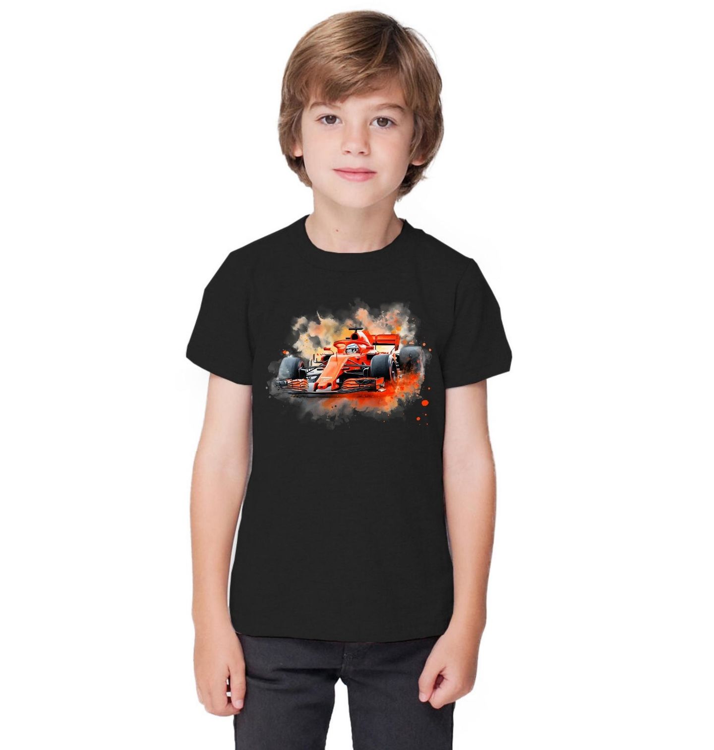 Dětské tričko Závodní Formule 1. Zažij maximální adrenalin a styl s tímto originálním motivem, kde hlavní roli hraje auto formule v akci. Ideální pro fanoušky motorsportu, rychlosti a designu. Tento potisk zachycuje okamžik, kdy se auto formule řítí po trati v oblaku dýmu a barvy – perfektní dárek pro každého milovníka závodů.