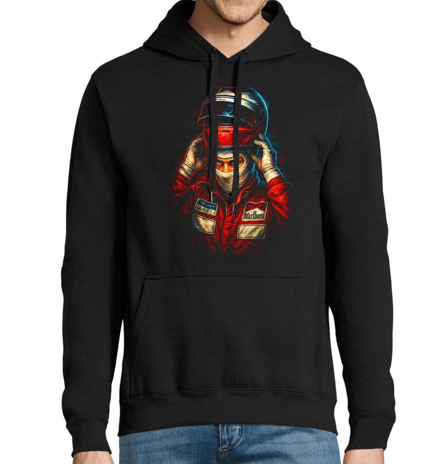 Pánská mikina Závodník Formule 1. Ikonický motiv zachycuje závodníka ve stylu legend Formule 1, inspirovaného Michaelem Schumacherem - érou dominance a nekompromisní rychlosti. Pokud se ptáš kdo to je, jde o symbol závodní legendy, která definovala jednu generaci motorsportu – stylově připomínající největší jména historie. Červená kombinéza, soustředěný pohled a okamžik před nasazením helmy vytvářejí napětí těsně před startem. Tento design vzdává hold světu, kde rozhodují milisekundy a odvaha.
