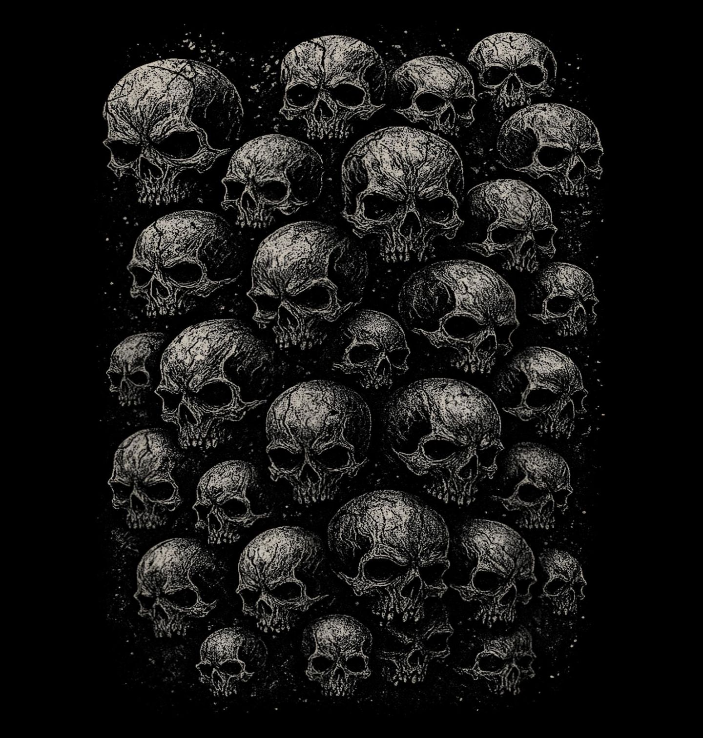 Pánské tričko Zeď z Lebek. Temný a působivý motiv lebka vedle lebky, ideální pro všechny milovníky gotického, metalového nebo hororového stylu. Tato ilustrace zachycuje armádu lebek v realistickém ztvárnění, která budí respekt i obdiv.