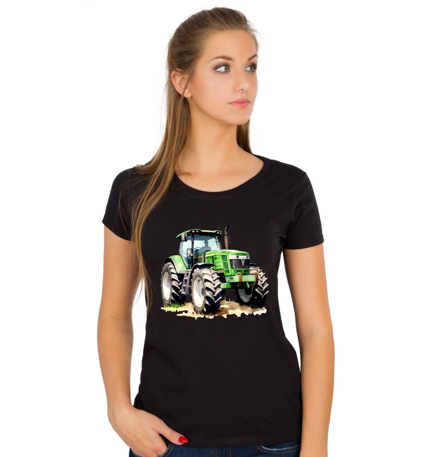 Dámské tričko Zelený Traktor. Tenhle design je splněný sen každého milovníka farmaření! Zelený traktor v plné parádě právě brázdí pole a ukazuje, kdo je tu pánem venkova. Ideální motiv pro každého farmáře, zemědělce nebo fanouška těžké techniky.