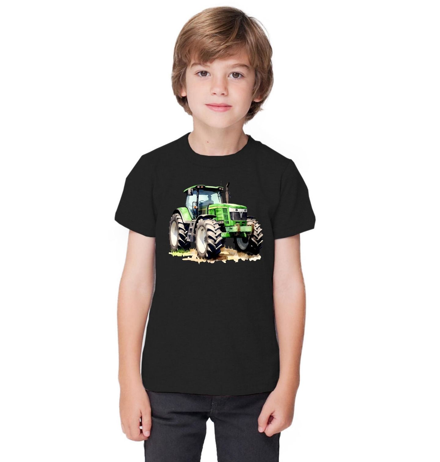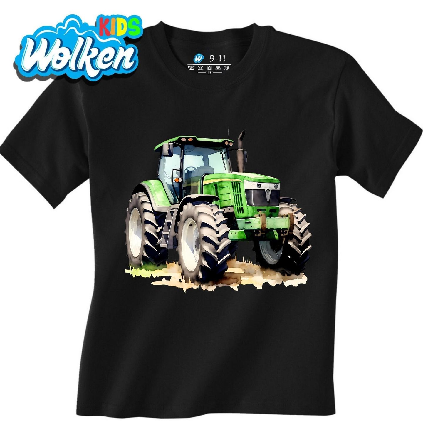 Dětské tričko Zelený Traktor. Tenhle design je splněný sen každého milovníka farmaření! Zelený traktor v plné parádě právě brázdí pole a ukazuje, kdo je tu pánem venkova. Ideální motiv pro každého farmáře, zemědělce nebo fanouška těžké techniky.