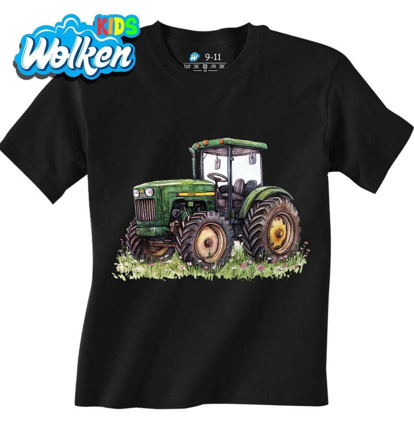 Dětské tričko Zelený Traktor na Rozkvetlém Poli. Krásně ilustrovaný traktor stojí uprostřed rozkvetlého pole, připravený na další den tvrdé práce. Ideální pro každého zemědělce, který má srdce zakořeněné v půdě, ale i pro fanoušky tradiční venkovské atmosféry. Tahle scéna připomíná, že opravdová síla roste právě ze země.