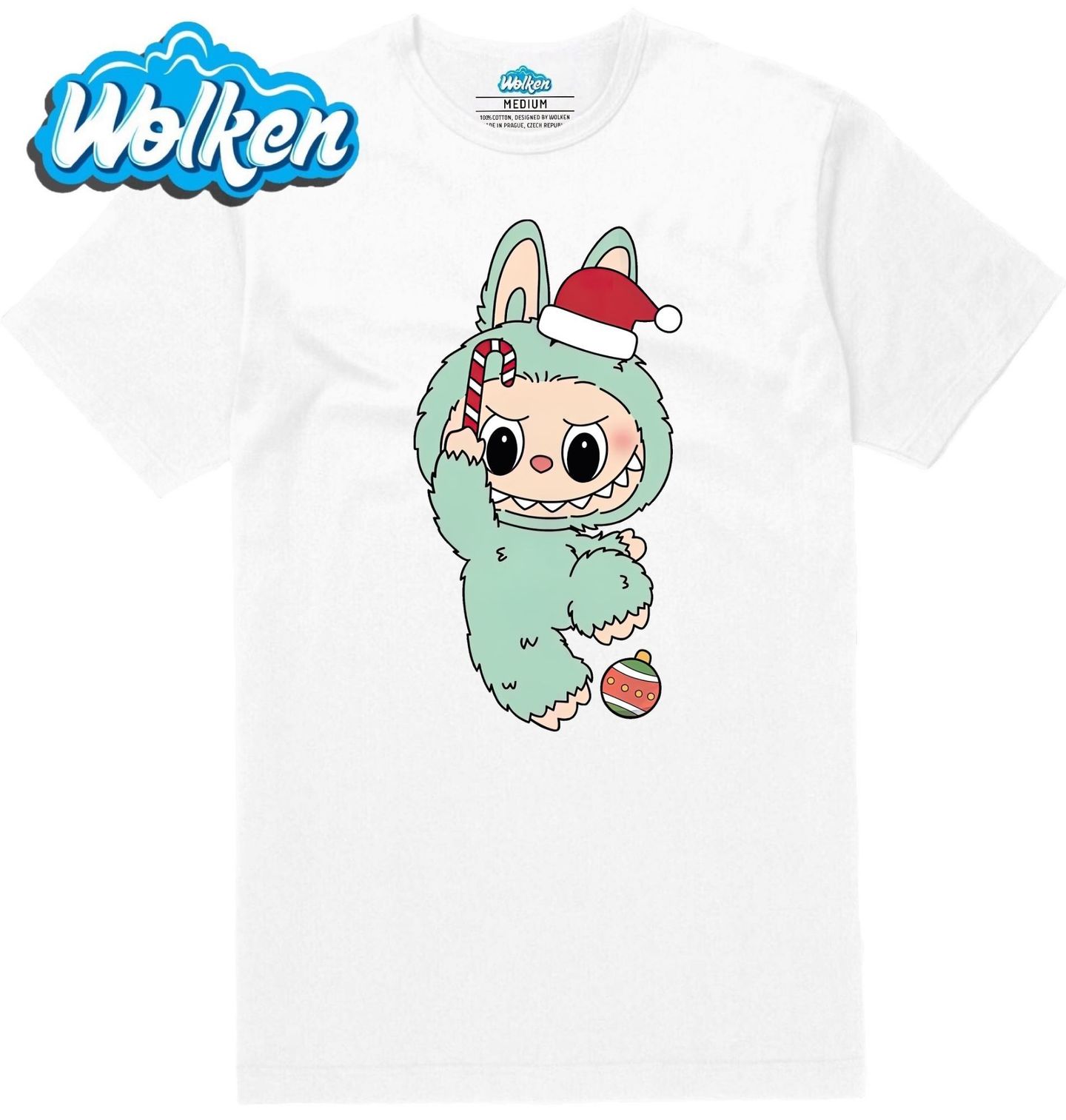 Pánské tričko Zelený Vánoční Labubu. Vánoce podle Labubu? Trochu rošťácké, hodně zábavné a úplně jiné než klasika! Tento motiv zachycuje Labubu s čepicí Santy, lízátkem v tlapce a vánoční ozdobou, kterou zjevně našel někde, kam neměl lézt. Typický výraz mluví za vše – Vánoce jsou tady a Labubu má plán.