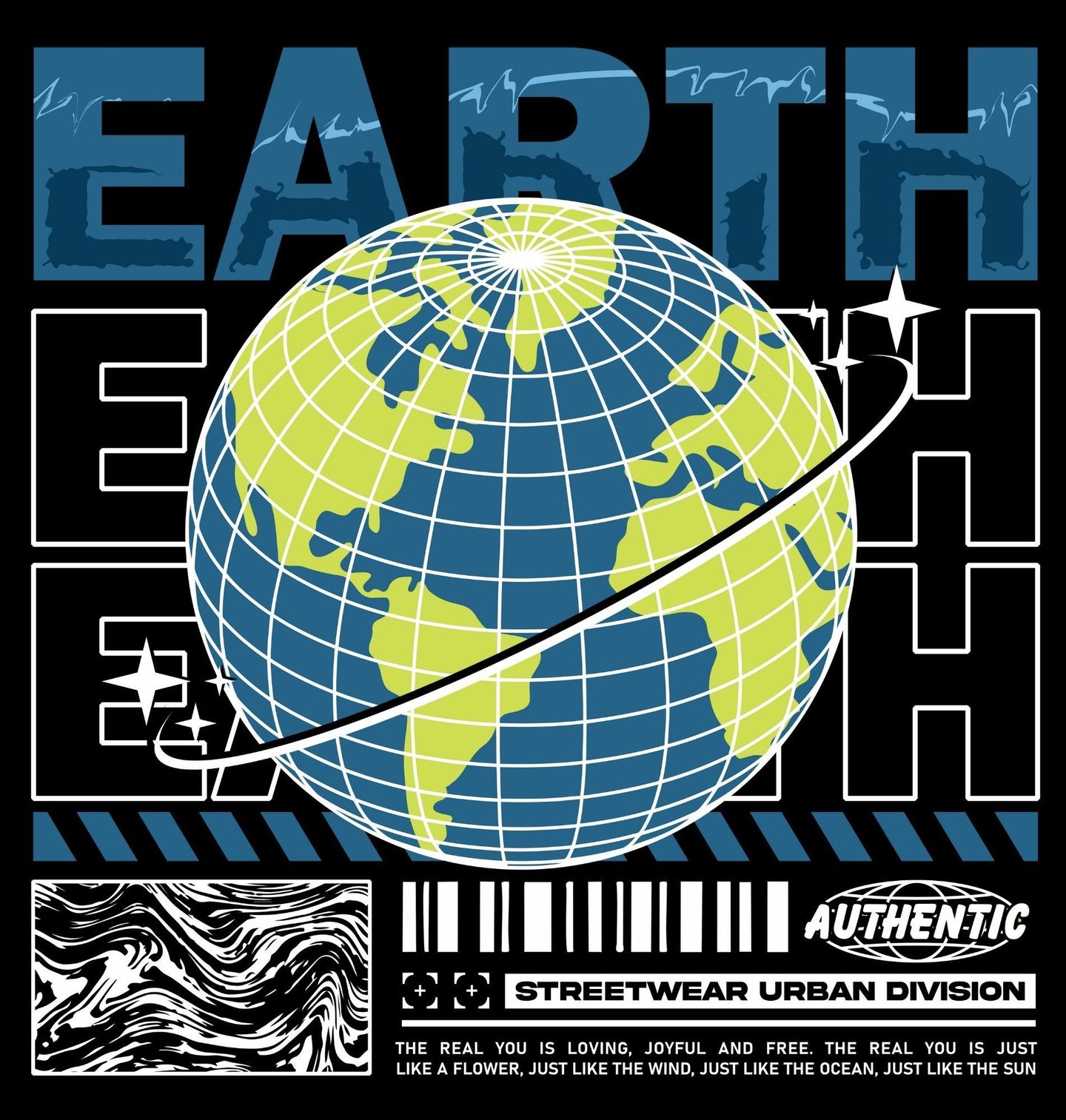 Pánské tričko Země EARTH. Stylový motiv s glóbem a nápisem EARTH pro všechny, kteří nosí Zemi v srdci. Urban streetwear design s nádechem futurismu propojuje ekologické myšlení s městskou módou. Ideální pro každého, komu není osud Země lhostejný a přitom chce vypadat dobře.