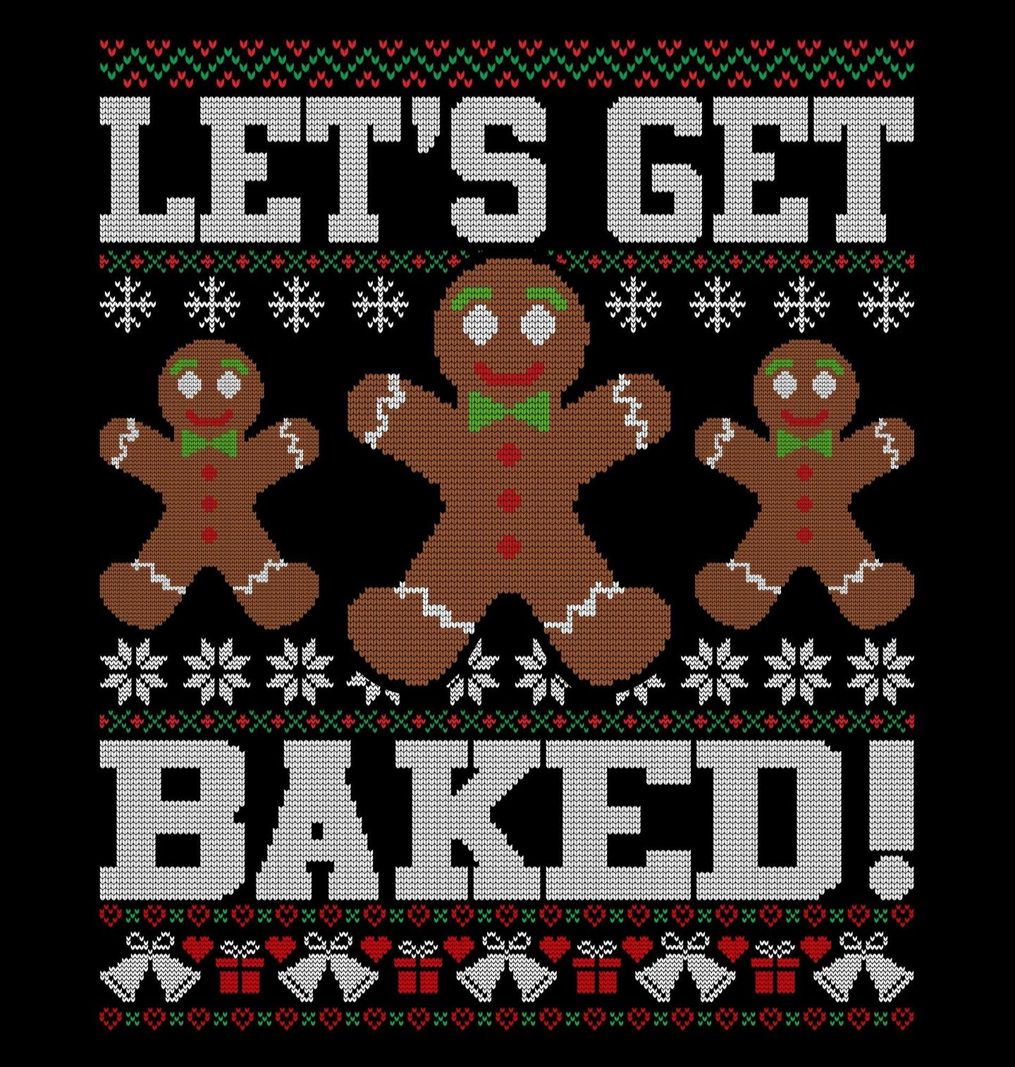 Dámské tričko Zhulený Perníček Let’s Get Baked. Hledáte originální motiv na Vánoce, který pobaví a vystihne vaši (ne)vinnou náladu? Tento ugly sweater s nápisem „Let’s Get Baked!“ a roztomilými perníčky je přesně to pravé! Hrátka se slovy zde funguje dvojím způsobem – může znamenat „upečme něco“ i „pojďme se zhulit“.