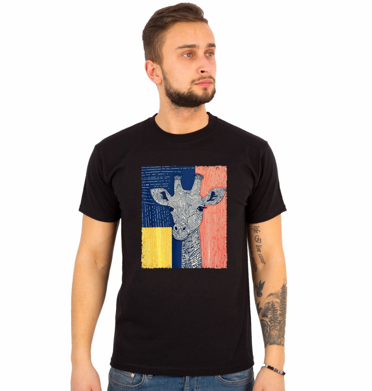 Pánské tričko Žirafa v barvách Afriky. Stylový motiv s moderní grafikou, kde hlavní roli hraje žirafa. Tento design zaujme na první pohled díky kontrastu výrazných barev a černobílé kresby žirafy. Ideální pro milovníky divoké přírody i originálních ilustrací.