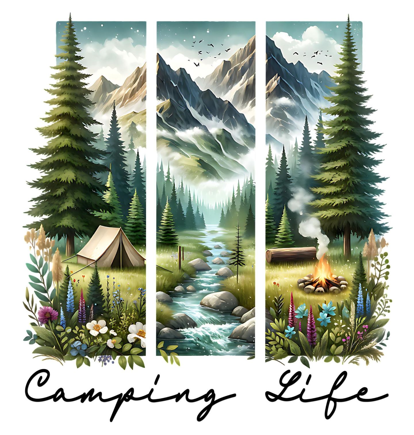 Dámské tričko Život v Horách Camping Life. Tričko s tímto motivem navodí atmosféru lesního rána, vůně dřeva a hřejivého ohně. Stan mezi stromy a výhled do horské krajiny připomíná, proč utíkáme z města – zpět k přírodě, k sobě samým. Hodí se jako pohodový outdoorový kousek pro každodenní nošení i jako dárek pro každého, kdo miluje camping, les a horský vzduch.