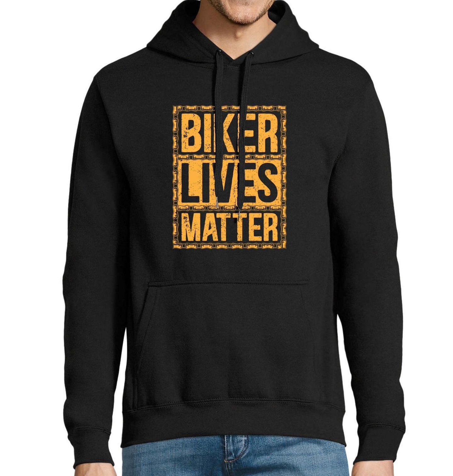 Pánská mikina Životy Motorkářů Mají Význam Biker Lives Matter. Pro ty, kdo mají rádi motorky! Tento design přináší výrazný a odvážný vzkaz s nápisem Biker Lives Matter, který je jasnou narážkou na známé hnutí "Black Lives Matter", ale s přesměrováním pozornosti na motorkáře – tedy hravá a lehce sarkastická úprava sloganu.