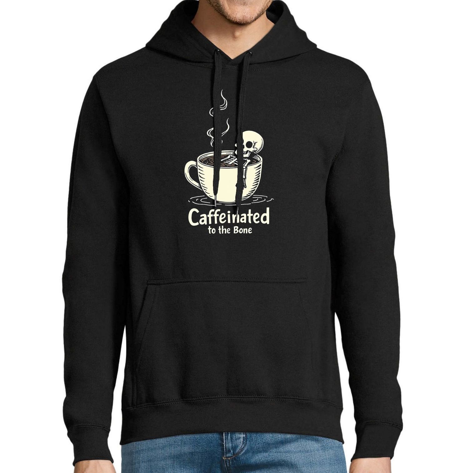 Pánská mikina Zkofeinovaný až na kost. „Caffeinated to the Bone“ = „Zkafeinovaný až na kost“. Kostlivec relaxující v obrovském šálku horké kávy, ze kterého se ještě kouří. Vtipná a lehce morbidní ilustrace perfektně vystihuje pocit, kdy vás káva drží při životě. Skvělý dárek pro baristy nebo kávové nadšence.