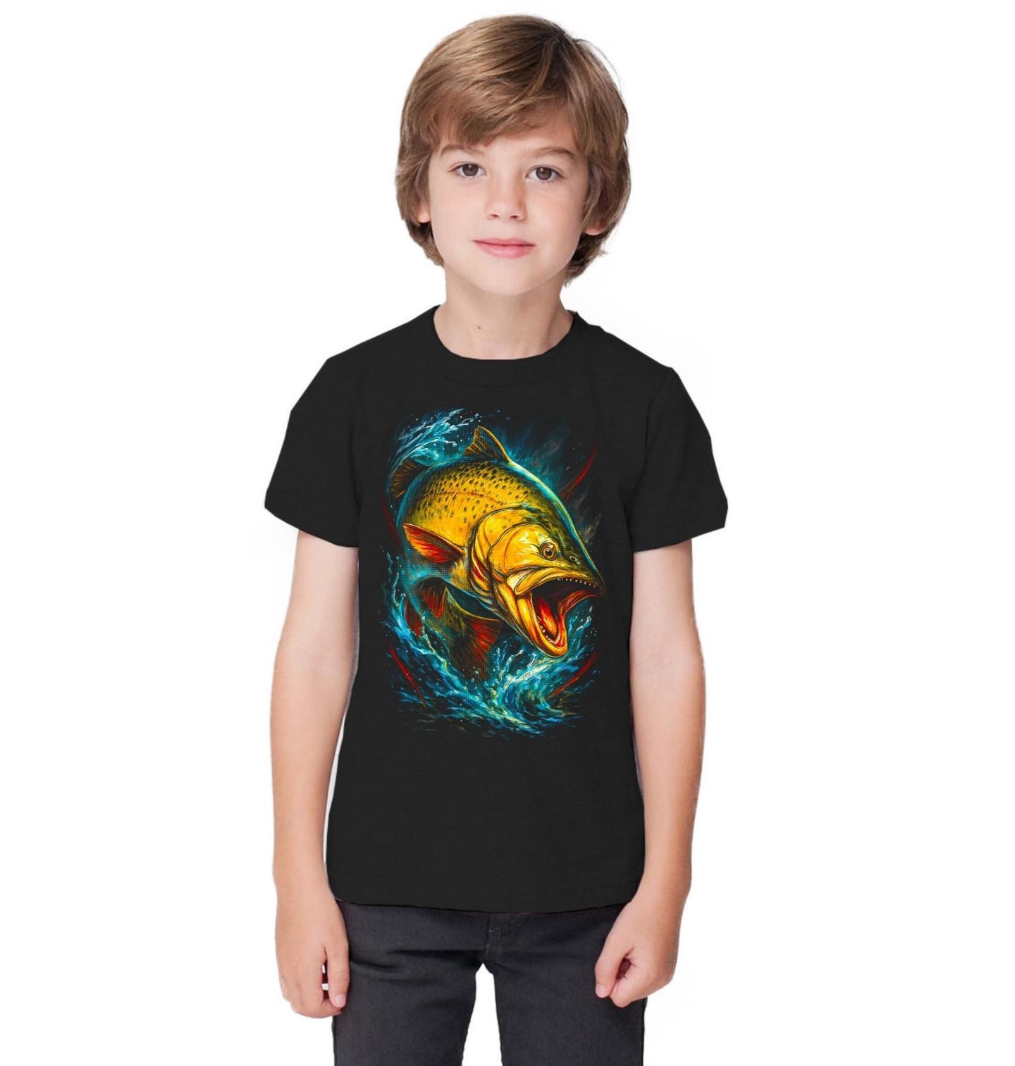 Dětské tričko Zlak nachový. Zlak nachový (Coryphaena hippurus), také koryféna, doráda nebo mahi-mahi, je dravá ryba vyskytující se v teplých mořích celého světa. Tento obraz okamžitě připomene adrenalin, který přináší rybaření na otevřeném moři. Motiv je ideální pro každého, koho fascinuje oceán, lov a svoboda, kterou dobře zná každý rybář.