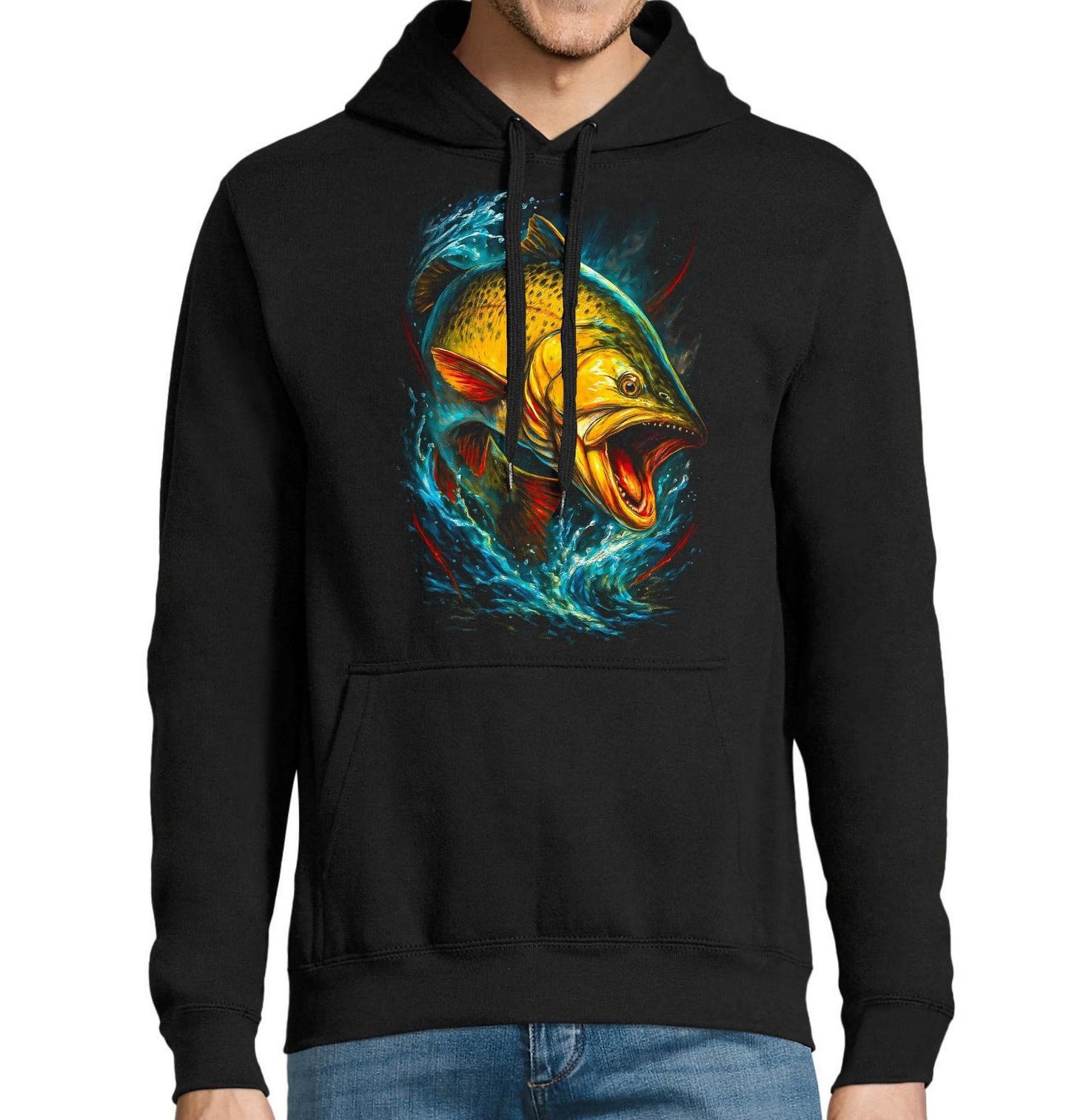 Pánská mikina Zlak nachový. Zlak nachový (Coryphaena hippurus), také koryféna, doráda nebo mahi-mahi, je dravá ryba vyskytující se v teplých mořích celého světa. Tento obraz okamžitě připomene adrenalin, který přináší rybaření na otevřeném moři. Motiv je ideální pro každého, koho fascinuje oceán, lov a svoboda, kterou dobře zná každý rybář.