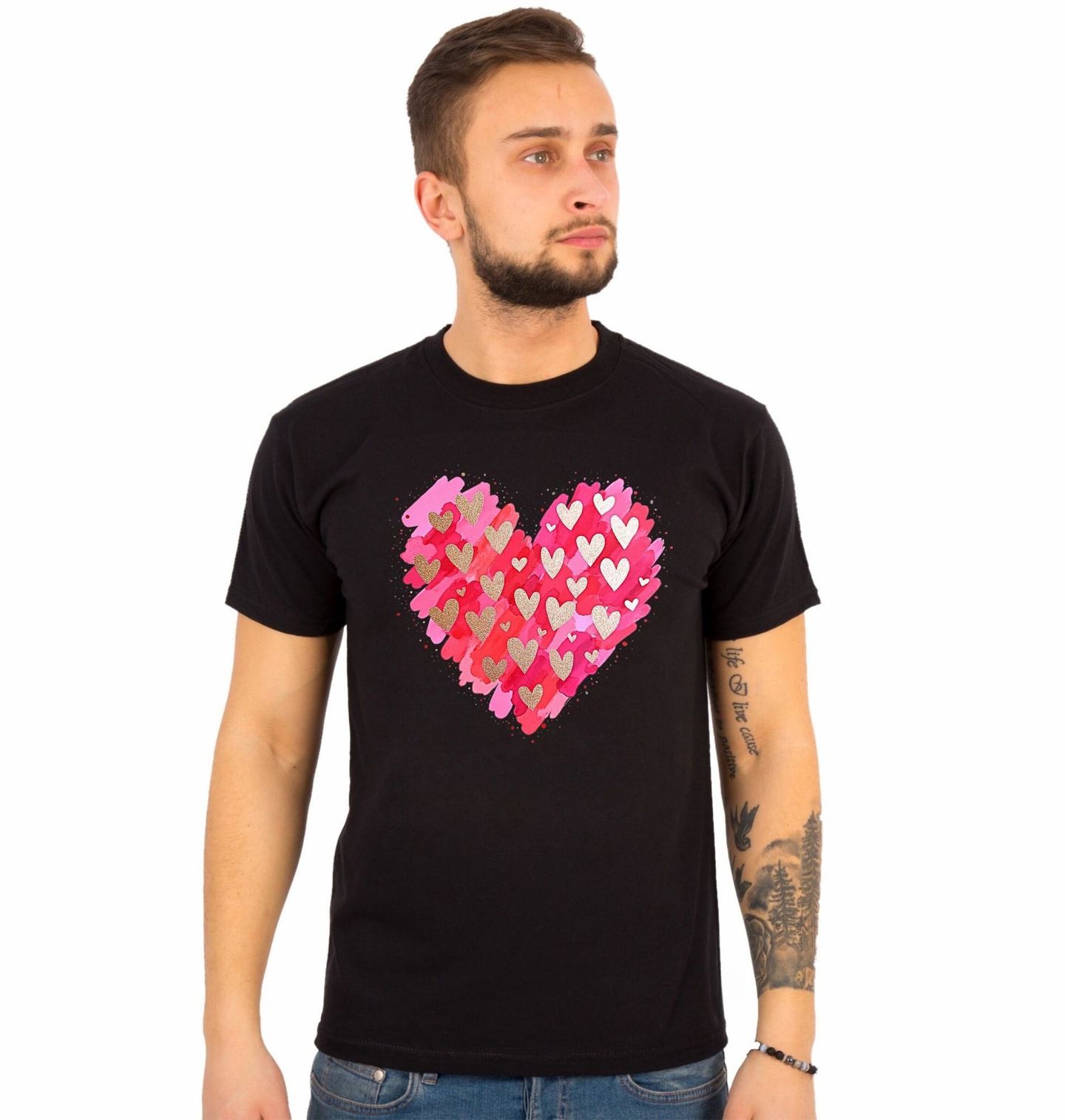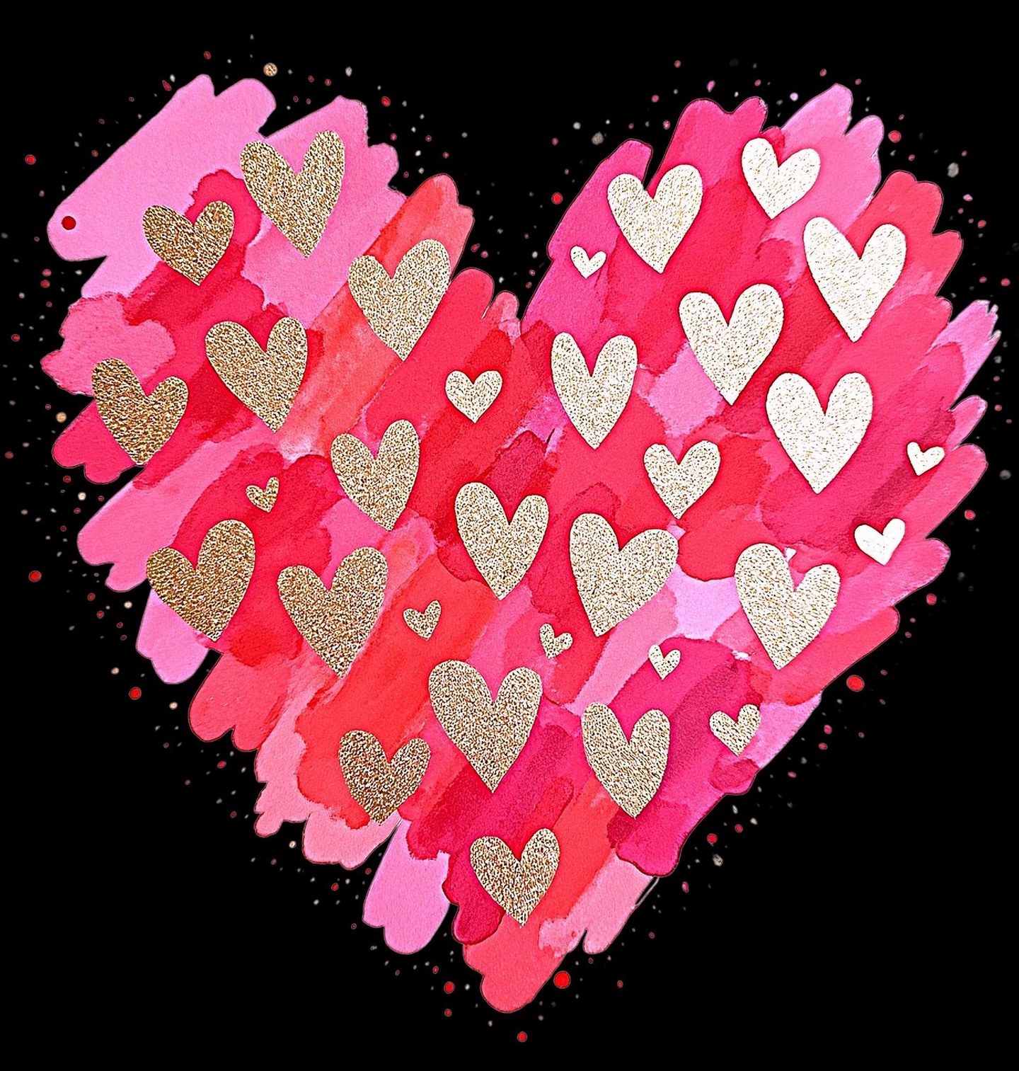 Pánské tričko Zlaté Srdce Lásky. Romantický motiv ve tvaru srdce plného zlatých detailů vyjadřuje láska v té nejčistší a nejradostnější podobě. Růžové akvarelové tóny v kombinaci se třpytivými srdíčky vytvářejí jemný, hravý a zároveň elegantní design, který okamžitě zaujme.