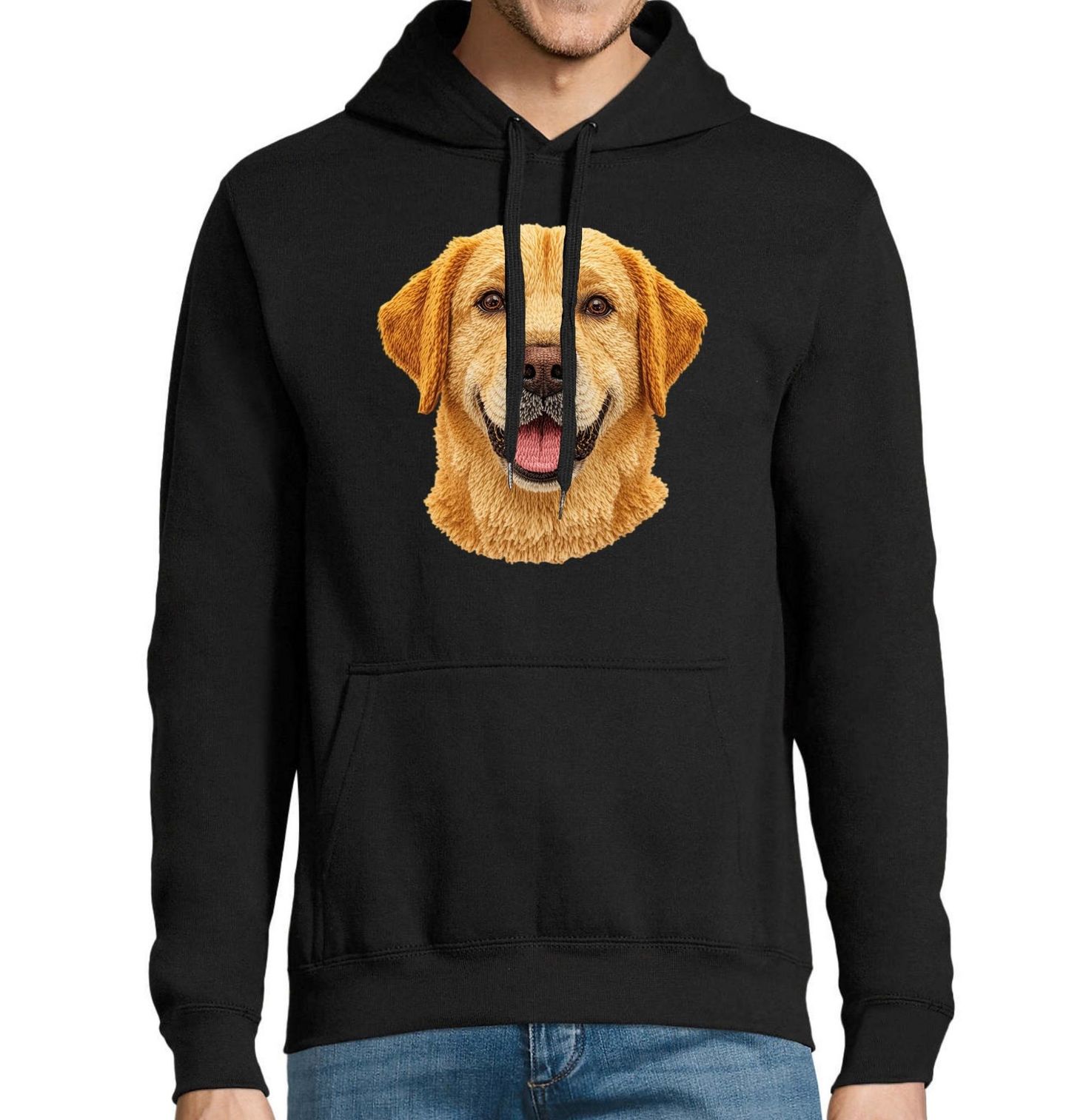 Pánská mikina Zlatý Háčkovaný Labradorský retrívr. Motiv je vytištěný potiskem – nejedná se o výšivku ani háčkovaný 3D prvek! Tento motiv zachycuje Labradorský retrívr s typickým veselým výrazem, který ocení každý pejskař milující pozitivní a hravé plemeno. Labradorský retrívr je symbolem věrnosti, inteligence a rodinné pohody, a právě proto je tento motiv ideální volbou pro všechny, kdo chtějí vyjádřit svou lásku ke psům a jedinečnému plemeni Labradorský retrívr.