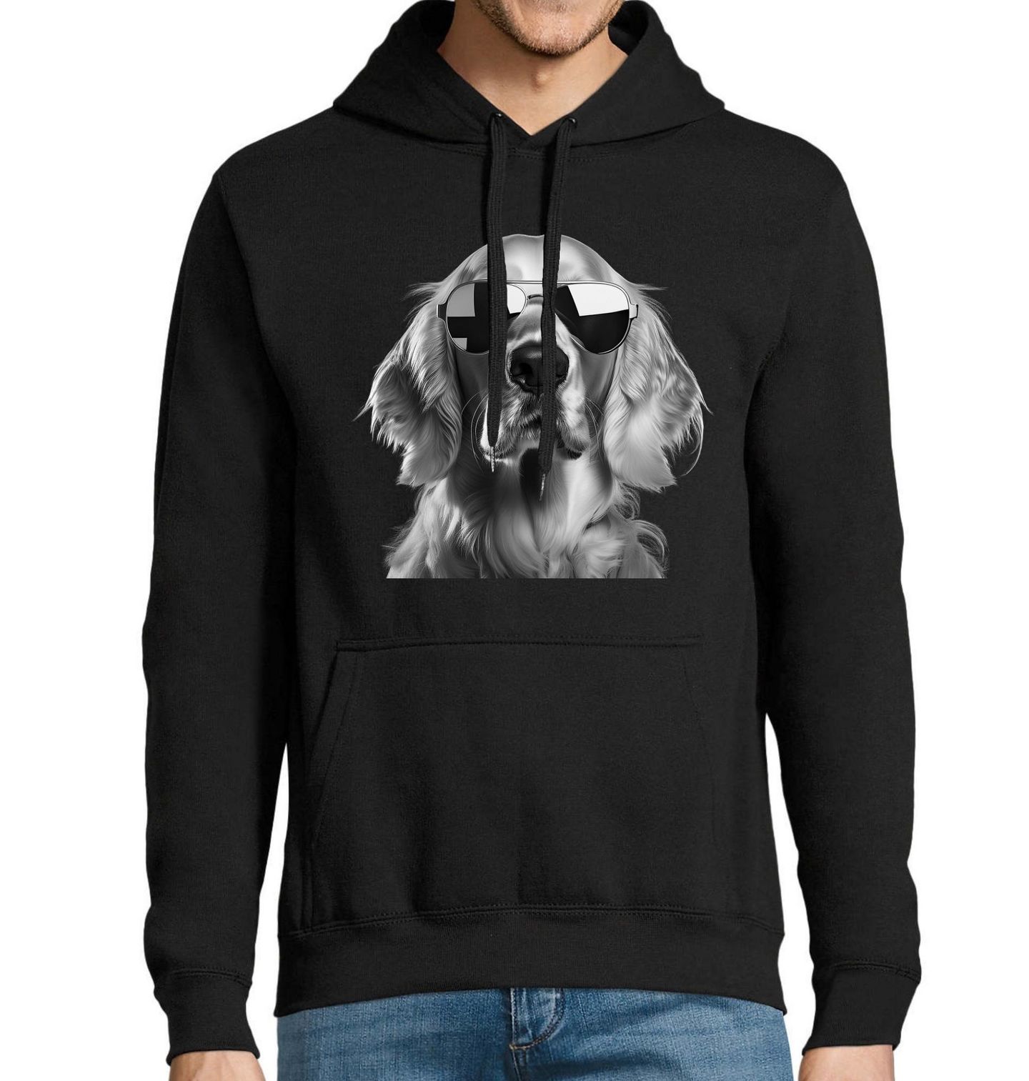 Pánská mikina Zlatý retrívr se Slunečními Brýlemi. Moderní a originální motiv, kde hlavní roli hraje elegantní zlatý retrívr v cool brýlích, zaujme každého milovníka psů. Tento design spojuje styl, nadhled a lásku, kterou pes přináší do života svého majitele. Skvělá volba pro každého, kdo je hrdý pejskař a chce ukázat svůj vztah ke čtyřnohému parťákovi i jedinečnému plemeni zlatý retrívr.
