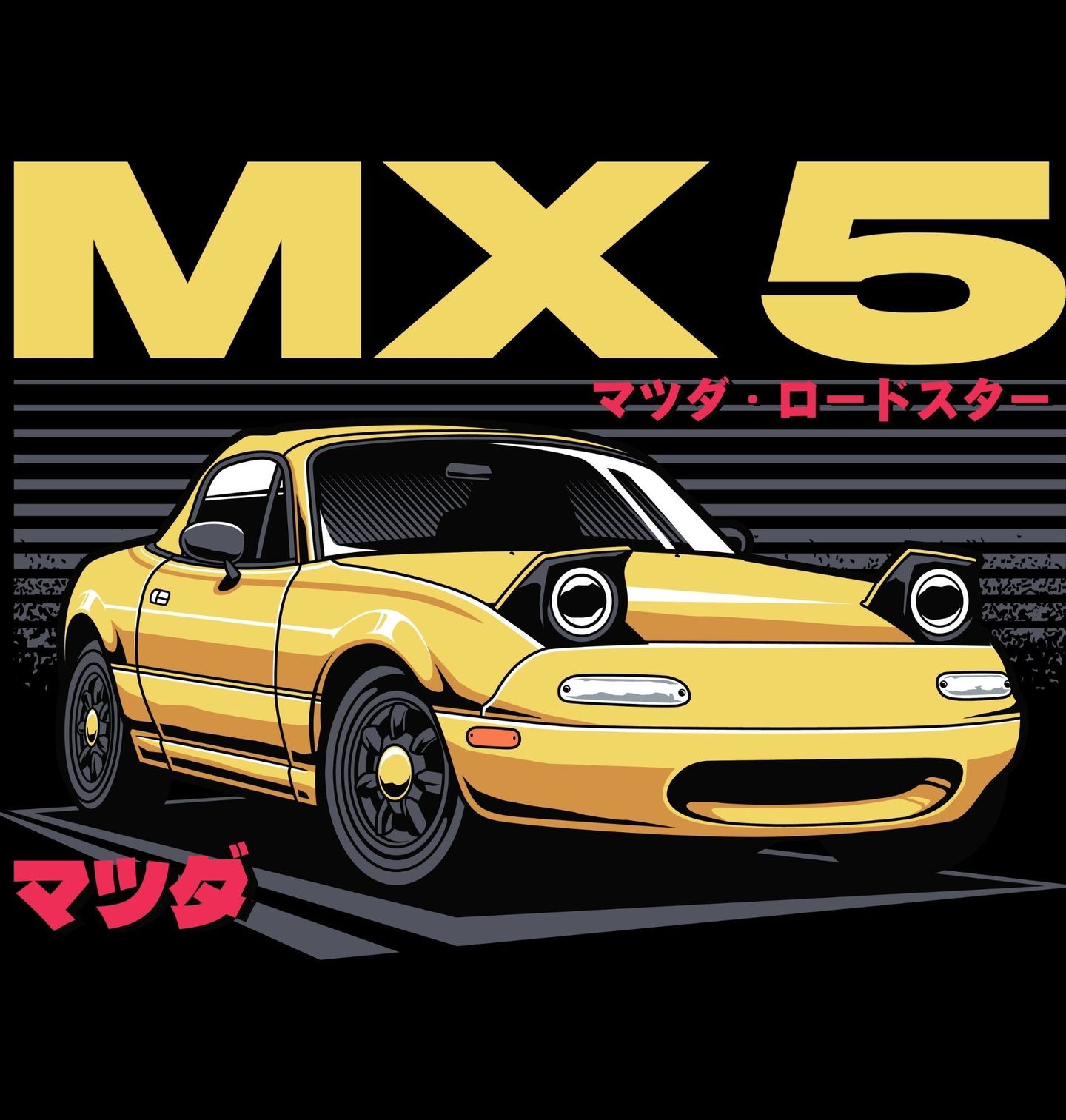 Pánská mikina Žlutá Mazda MX-5 Miata. Stylový design zachycuje legendární japonské auto inspirované ikonickým roadsterem Mazda MX-5, který se stal symbolem radosti z jízdy a lehkého sportovního stylu. Výklopné světlomety, čisté linie karoserie a retro atmosféra dodávají motivu autentický nádech Japonsko automobilové kultury, kterou milují fanoušci po celém světě.