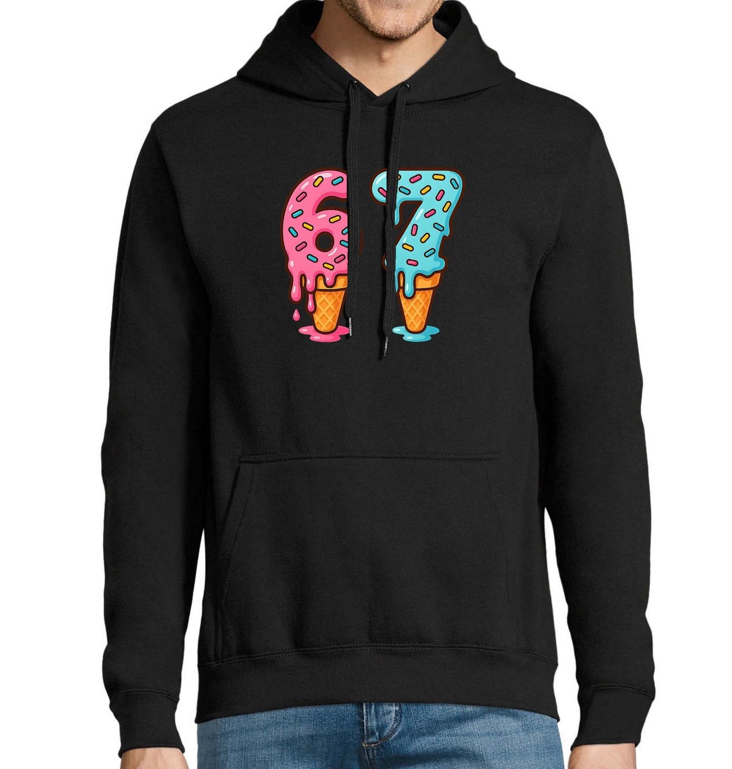 Pánská mikina Zmrzlinový Kornout 67 Six Seven. Sladký letní vibe! Číslo 67 je tu proměněné do barevných kopečků, které roztékají přímo jako lahodná zmrzlina. Tenhle hravý design six seven spojuje roztomilý styl a oblíbený internetový trend meme, takže tričko nebo mikina se stane okamžitě nepřehlédnutelným kouskem.