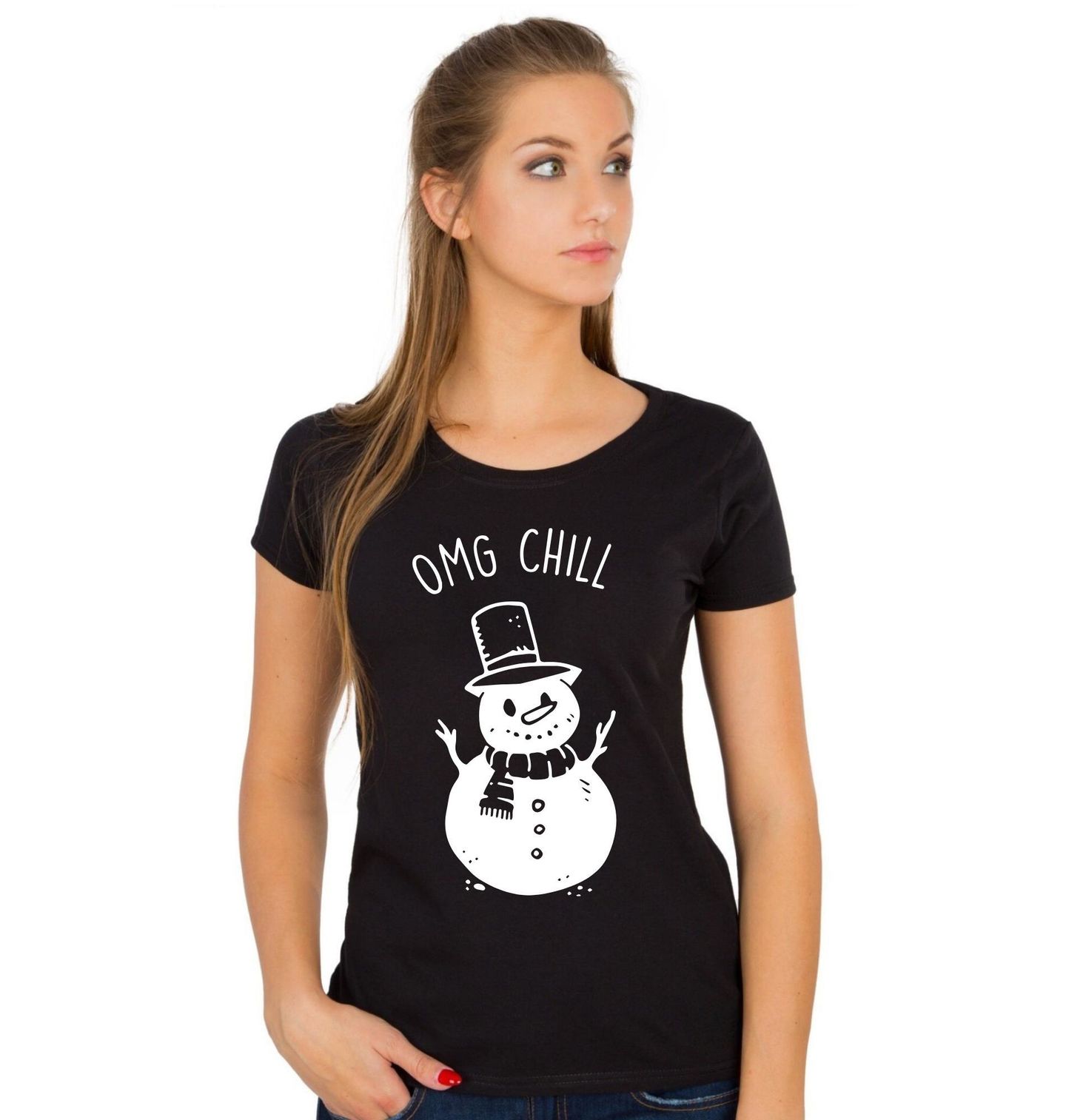 Dámské tričko Zmrzlý Sněhulák Omg Chill. Tento minimalistický motiv se sněhulákem a nápisem „OMG CHILL“ si s tím skvěle hraje – anglický výraz chill totiž znamená nejen klid a pohodu, ale také chlad, který k zimě a sněhulákům neodmyslitelně patří. Originální a vtipný design pro ty, kdo chtějí oslavit Vánoce s lehkostí a úsměvem.