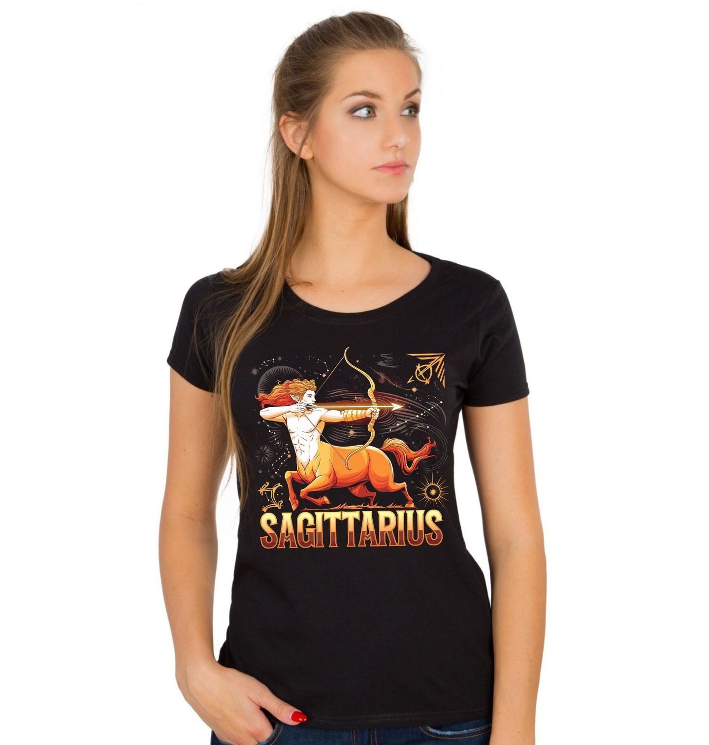 Dámské tričko Znamení Horoskopu Střelec Sagittarius. Pro každého, kdo míří vysoko – tričko s motivem znamení zvěrokruhu Střelec Sagittarius tě propojí s tvou kosmickou energií. Design inspirovaný fantasy a astrologií zachycuje klasického kentaurího střelce připraveného vypustit svůj šíp do hvězd. Patříš mezi narozené ve znamení Střelce? Horoskop Střelec: 22. listopadu – 21. prosince.